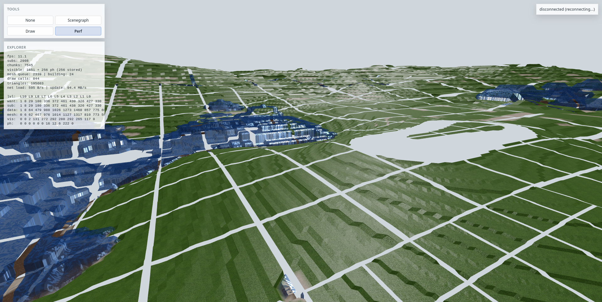 Schrompf hat geschrieben: 30.01.2026, 11:39 Hm? Ich seh's nicht. Wenn die weißen Linien Block-Ränder sein sollen, dann verkackt Deine LOD-Berechnung doch sichtbar? Am Rand weiter höchste Auflösung als in der Mitte? Müsste uniform sein, oder sogar andersrum.