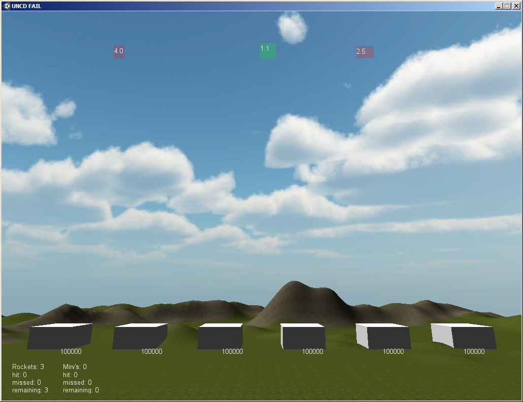 Das ursprünglich für den Atari entwickelte Spiel Missile Command welches ich vom Amiga kenne. Darin übernimmt der Spieler die Verteidigung von 6 Städten vor Nuklearwaffen (Bomben, Flugzeugen, Satelliten, ICBM's und MIRV's). Dabei klickt man auf eine Stelle am Himmel und dort wird durch kurze Zeit später durch eine Abwehrrakete eine Explosion erzeugt durch die die feindlichen Flugkörper zerstört werden können. Man braucht also Geschick mit der Maus und schnelle Reaktionen. Ich wollte das ganze umdrehen und statt der Verteidigung soll man in UNCD FAIL den Angriff übernehmen. Damit das ganze vom Prinzip her das gleiche bleibt muss man in einer gewissen Zeit in Felder klicken um Raketen und die Ziele der MIRV's zu "aktivieren". Schafft man das nicht geht eine Möglichkeit Schaden zu machen verloren. Es werden also nur die Raketen und MIRV's gestartet die rechtzeitig angeklickt wurden.