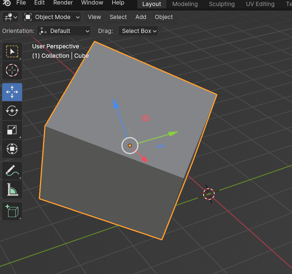 (Das selbe gibt es auch für Skalieren und Rotieren, sowie ein allgemeines Transform-Tool, dass Bedienelemente für alle 3 Operationen für alle Achsen anzeigt.)