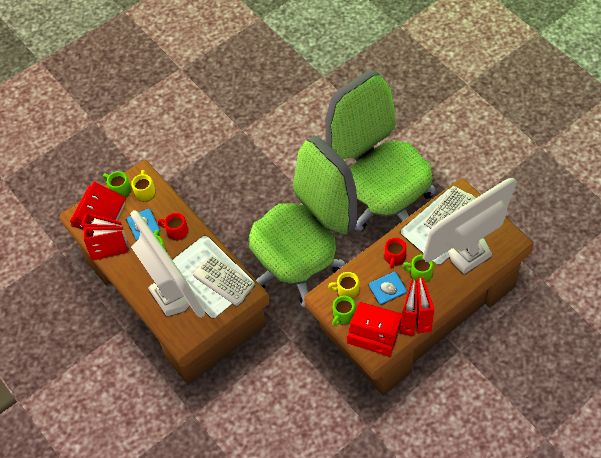 Haeufig muss man einen billigen Schreibtisch irgendwo platzieren um die teuren Schreibtische 'vernuenftig' setzen zu koennen. Ein Vorschlag um diese 'Hilfsschreibtische' - welche man anschliessend wieder loescht - zu vermeiden waere, dass man die Schreibtische evtl. auch ein Tile ausserhalb des normal erlaubten Bereichs platzieren darf, evtl. auch in Abhaengigkeit von anderen sich in der Naehe befindlichen Schreibtischen. Aber vielleicht sind diese 'Hilfsschreibtische' ja auch eure Designintention. :)