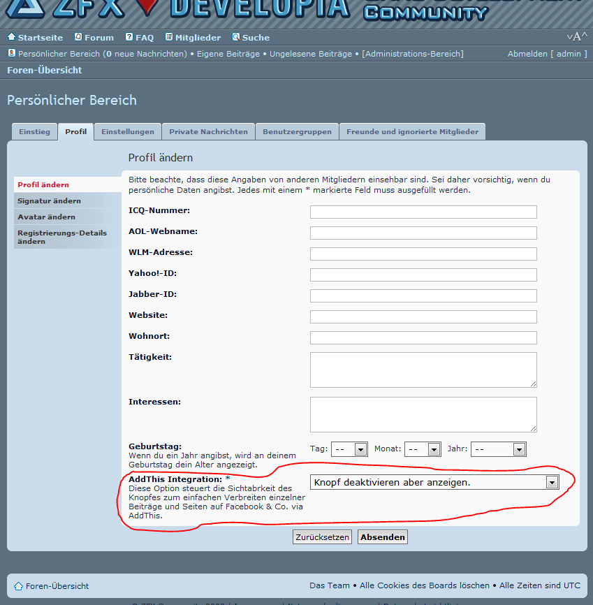 Gegen Addthis/Addtoany oder ähnliche Social Networking Tools ist im Grunde nichts einzuwenden*. Sollte ZFX aber tatsächlich eine Facebook Seite werden werde ich wohl meinen Account hier auflösen. Ich will mit Facebook möglichst nichts zu tun haben.