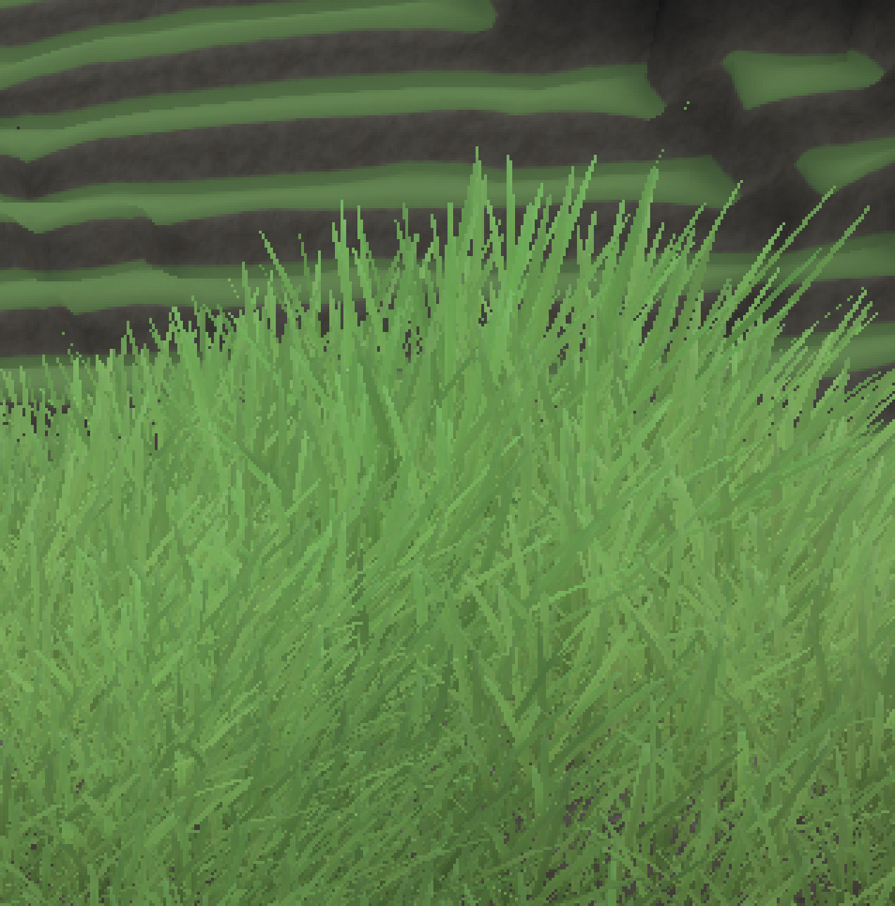 Das sieht beleuchteter aus, weil manchmal Grashalme über die anderen gerendert werden und da die an der Wurzel dunkler sind (gefaktes AO) wird das Bild Kontrastreicher. An sich gefällt mir das auch besser. Aber ich würde das dann lieber auf einer soliden Basis feintunen, statt jetzt auf basierten Renderfehlern.