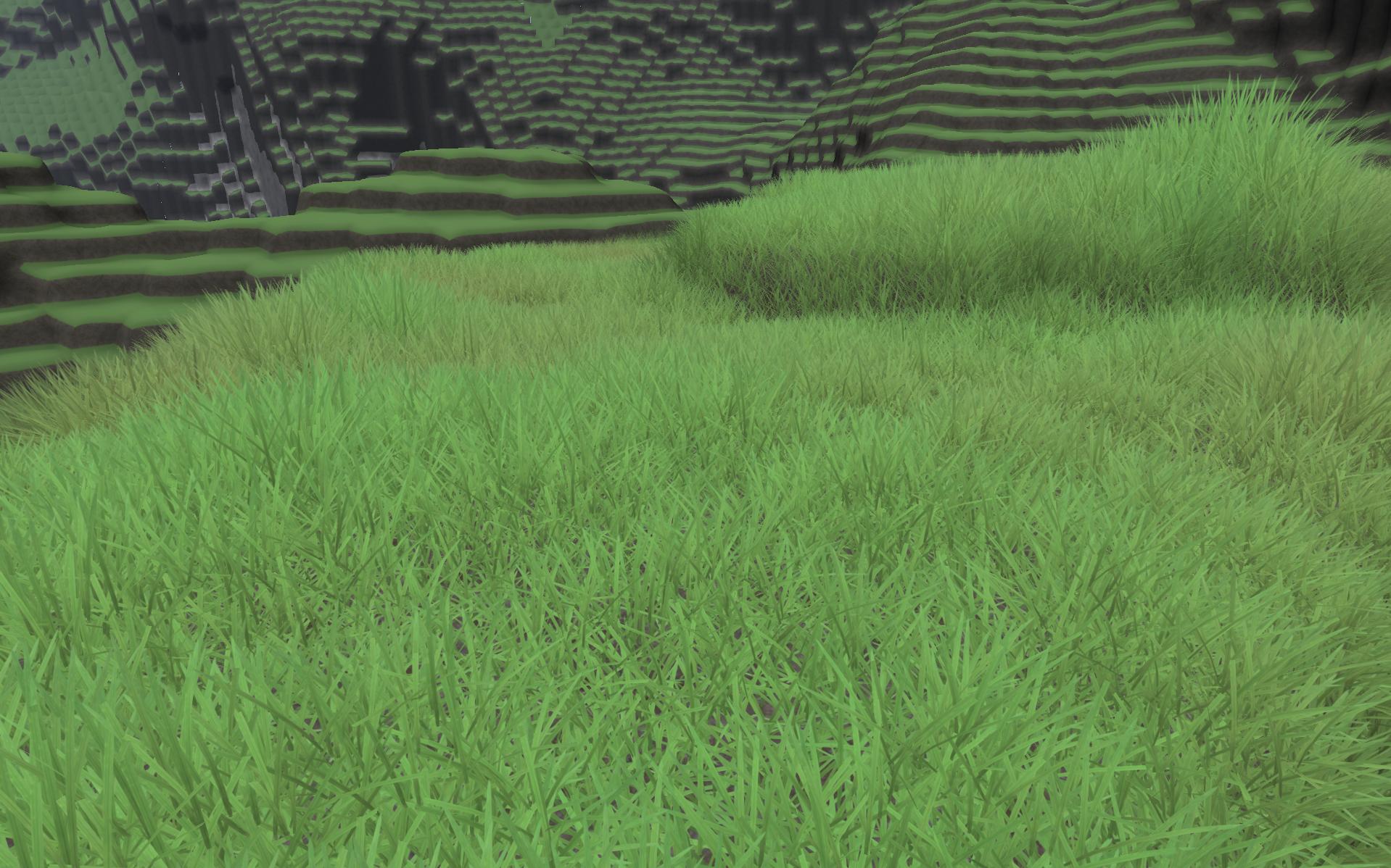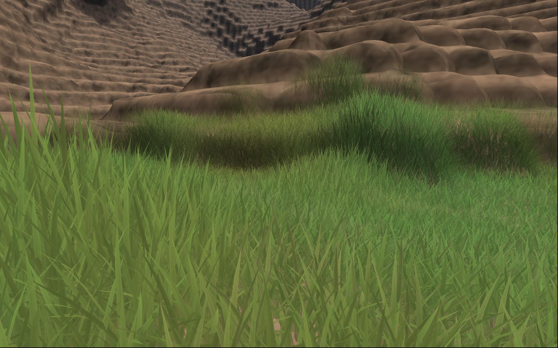 Das sieht beleuchteter aus, weil manchmal Grashalme über die anderen gerendert werden und da die an der Wurzel dunkler sind (gefaktes AO) wird das Bild Kontrastreicher. An sich gefällt mir das auch besser. Aber ich würde das dann lieber auf einer soliden Basis feintunen, statt jetzt auf basierten Renderfehlern.