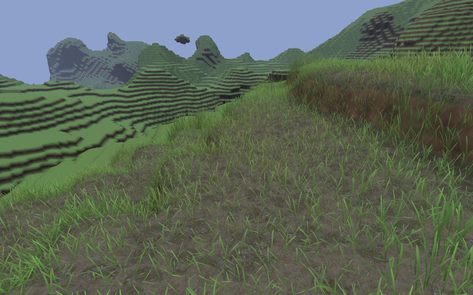 Ich überlege in der nächsten Schicht dann eine Low-Detailversion des Grases zu machen und dahinter dann nur noch in Spriteform...
