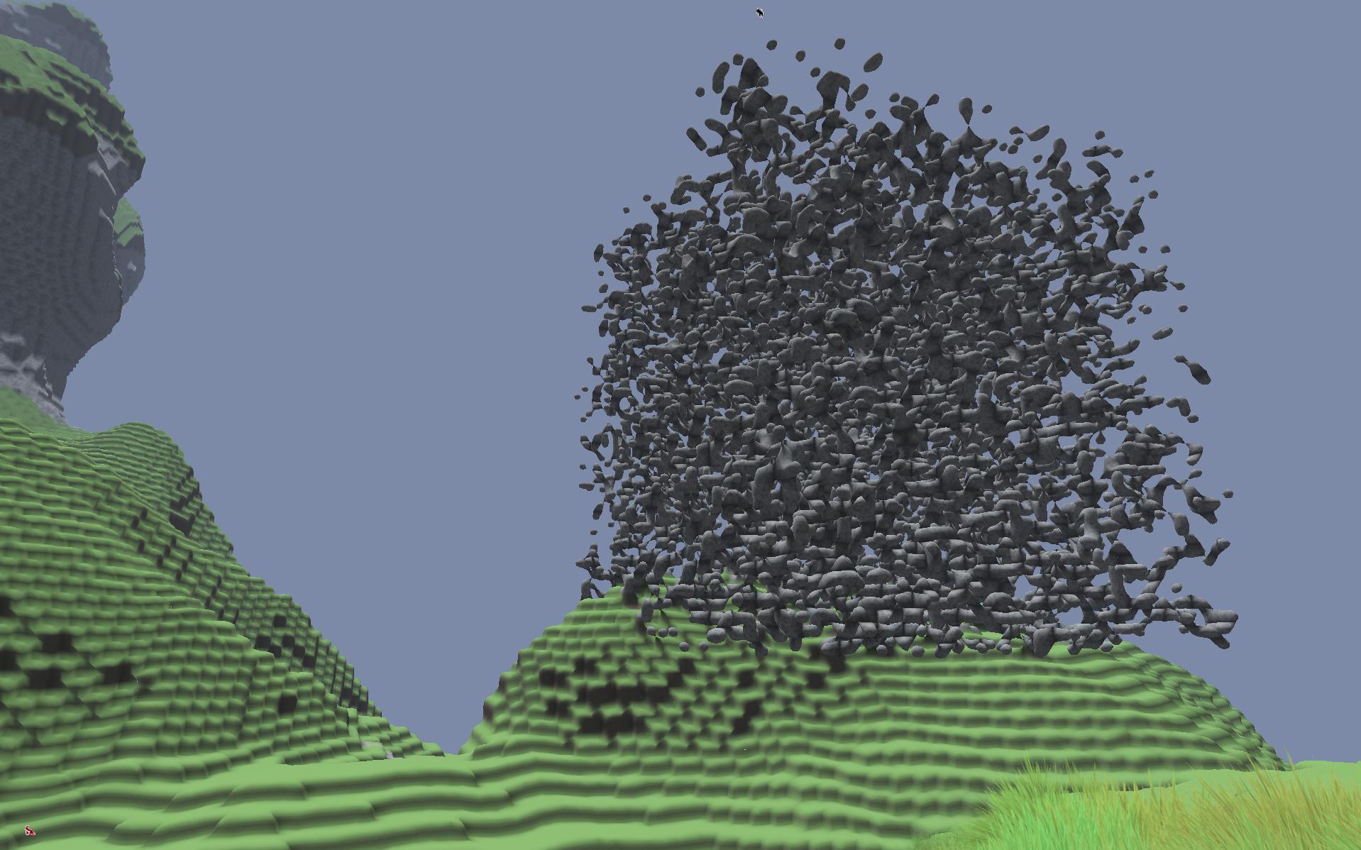 Sieht schon fast aus wie Voxelgrafik :) Durch die Steinchen-Optik musst du doch Milliarden an Polys produzieren. Hast du dafür irgendenen Trick? (Außer ner schnellen Grafikkarte ^^)