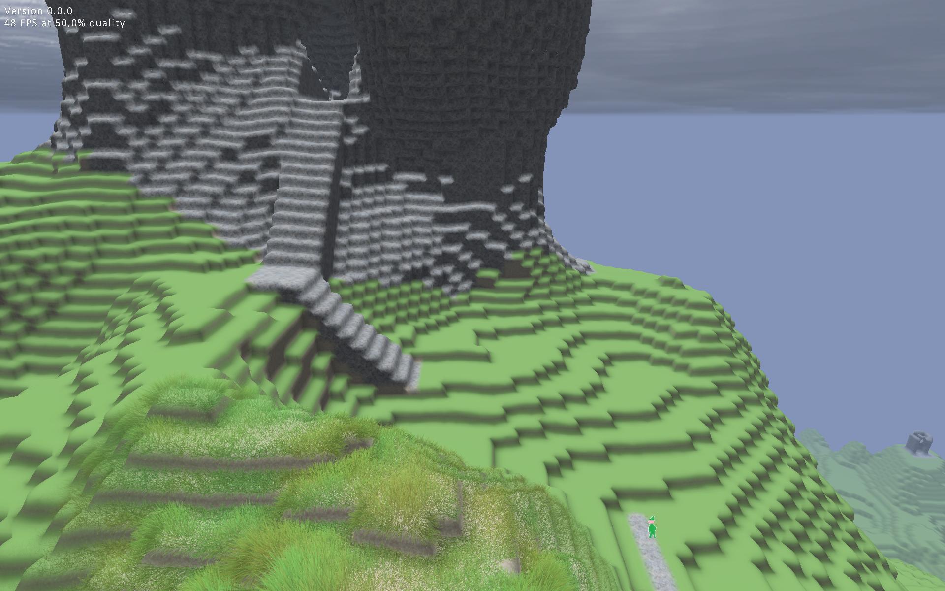 Evtl. könnte man das ja irgendwie beschleunigen, vielleicht müssen weit entfernte Levelabschnitte keine runde Blöcke haben, sondern nur aus Würfeln bestehen? Und von denen wird dann zu der hübscheren Version rübergeblendet.