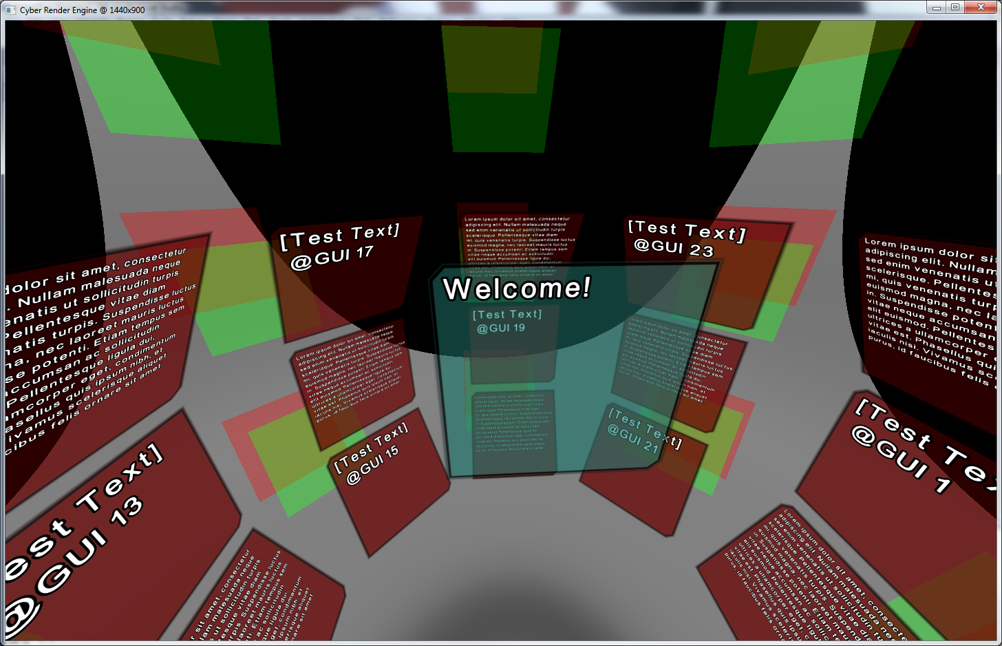 - Ich habe eine Scenen-Klasse zum verwalten aller Szenendaten erstellt, die unter anderem den Input der GUIs verwaltet, sodass sich Fokus und Mouse-Events richtig verhalten, wenn man mehrere GUIs in 3D übereinandersieht (man kann auch durch "leere" Bereiche eines GUIs "durchklicken")