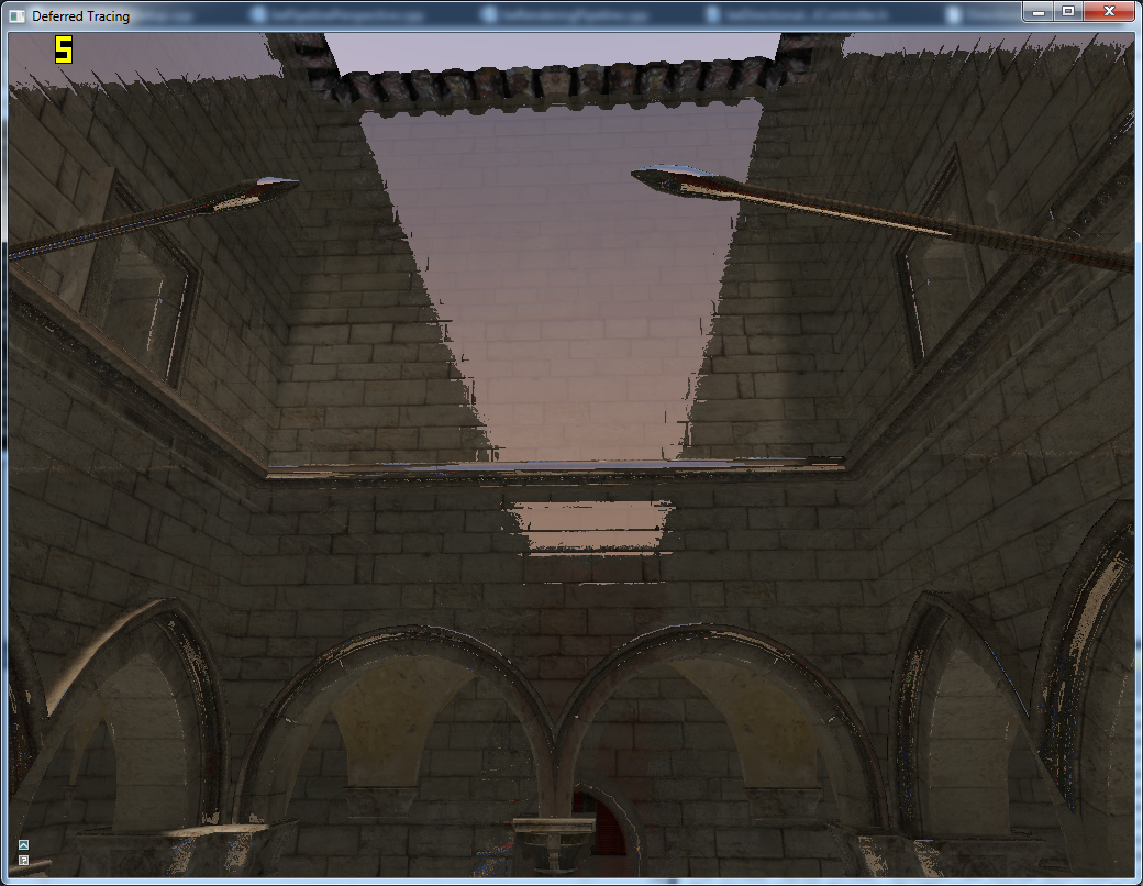 Der ein oder andere fragt sich jetzt vielleicht noch: Warum das Ganze? Es gibt in der Tat bereits wesentlich schnellere Ray-Tracing-Implementierungen auf der GPU, die von Geometrie-Bäumen oder auch Geometrie-Gittern Gebrauch machen. Diese erfordern jedoch meines Wissens nach alle wahlfreien Zugriff auf die gesamte Szenengeometrie und lassen sich somit nur schwerlich in aktuelle Real-time Rendering Pipelines integrieren. Obendrein geht damit der Bedarf eines wahlfreien Zugriffs auf Materialien und insbesondere Texturen einher. Das Verfahren, das ich hier konstruiere, ist direkt in eine ganz normale Deferred Shading Rendering Pipeline integriert, ohne globale Puffer für die Szenengeometrie und unter Verwendung eines ganz normale Objekt- bzw. Batch-basierten Objekt- und Materialsystems.