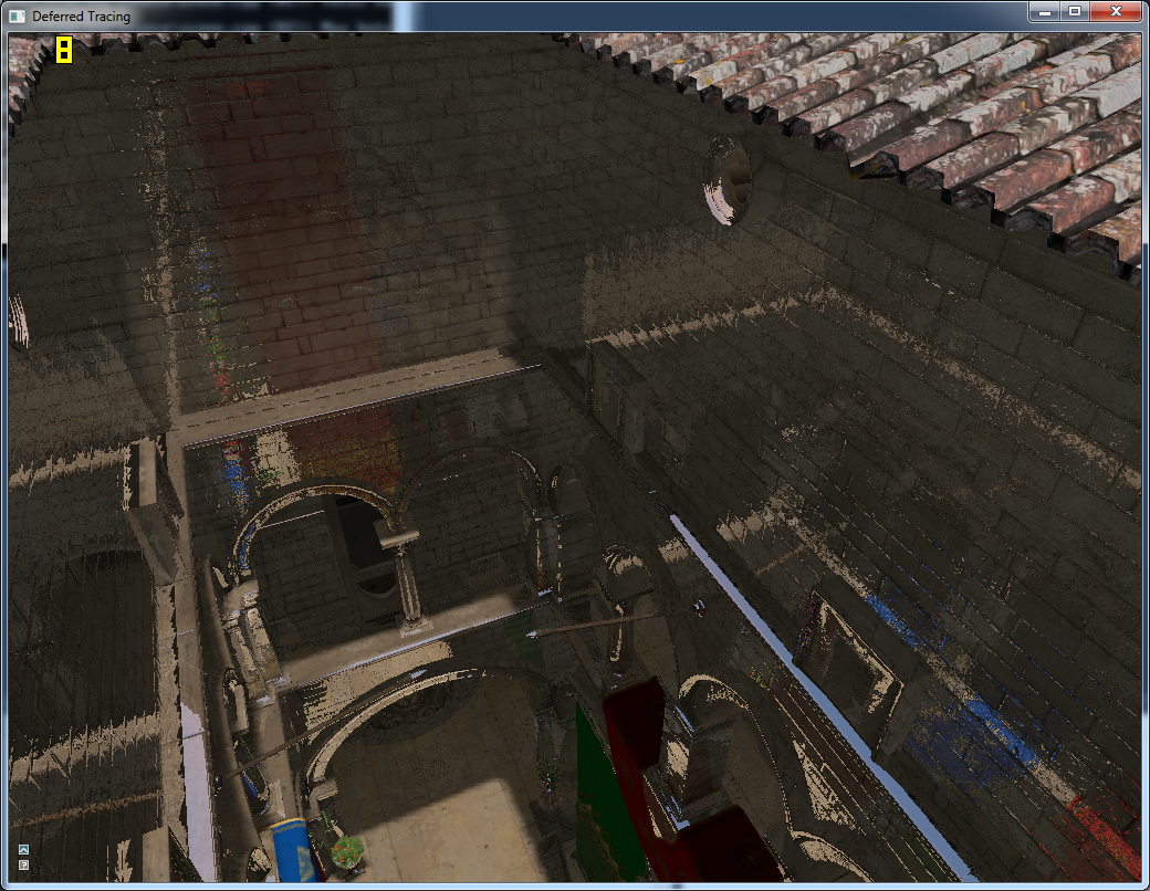 Der ein oder andere fragt sich jetzt vielleicht noch: Warum das Ganze? Es gibt in der Tat bereits wesentlich schnellere Ray-Tracing-Implementierungen auf der GPU, die von Geometrie-Bäumen oder auch Geometrie-Gittern Gebrauch machen. Diese erfordern jedoch meines Wissens nach alle wahlfreien Zugriff auf die gesamte Szenengeometrie und lassen sich somit nur schwerlich in aktuelle Real-time Rendering Pipelines integrieren. Obendrein geht damit der Bedarf eines wahlfreien Zugriffs auf Materialien und insbesondere Texturen einher. Das Verfahren, das ich hier konstruiere, ist direkt in eine ganz normale Deferred Shading Rendering Pipeline integriert, ohne globale Puffer für die Szenengeometrie und unter Verwendung eines ganz normale Objekt- bzw. Batch-basierten Objekt- und Materialsystems.