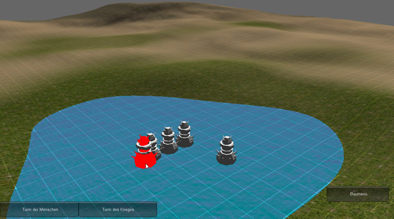 Türme können gebaut, selektiert werden und schießen... also mit momentan der ersten Waffe.