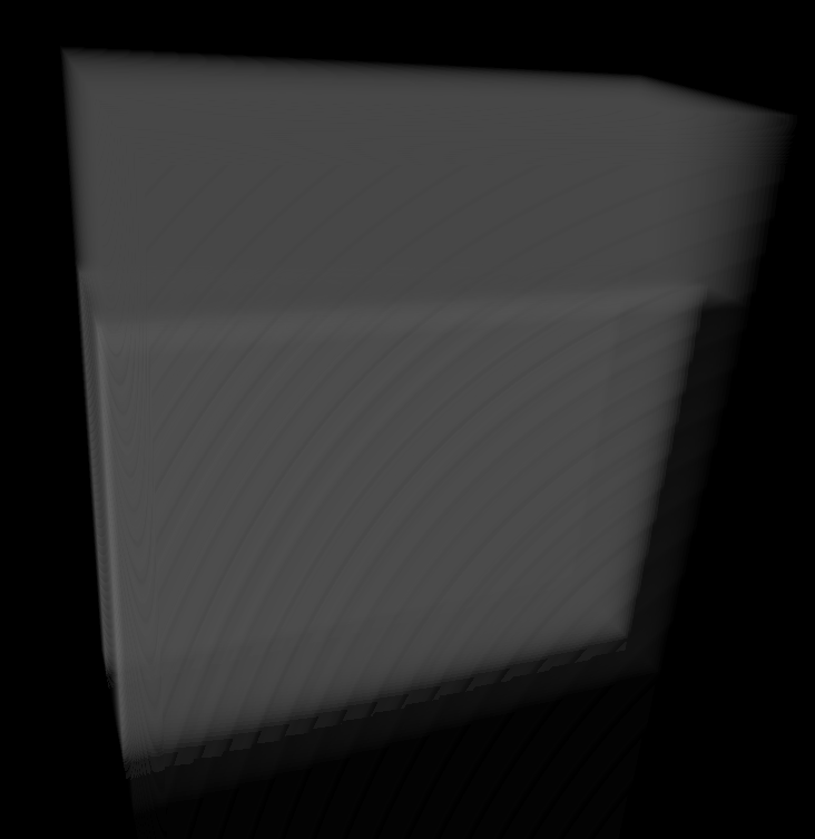 Das Volumen hier im zweiten Teil besteht eigentlich nur aus dem hinteren bereich. Die grauen Pixel davor die sich wie eine Box um das Volumen Aufbauen sind eigentlich gar nicht da, werden aber trotzdem gerendert...
