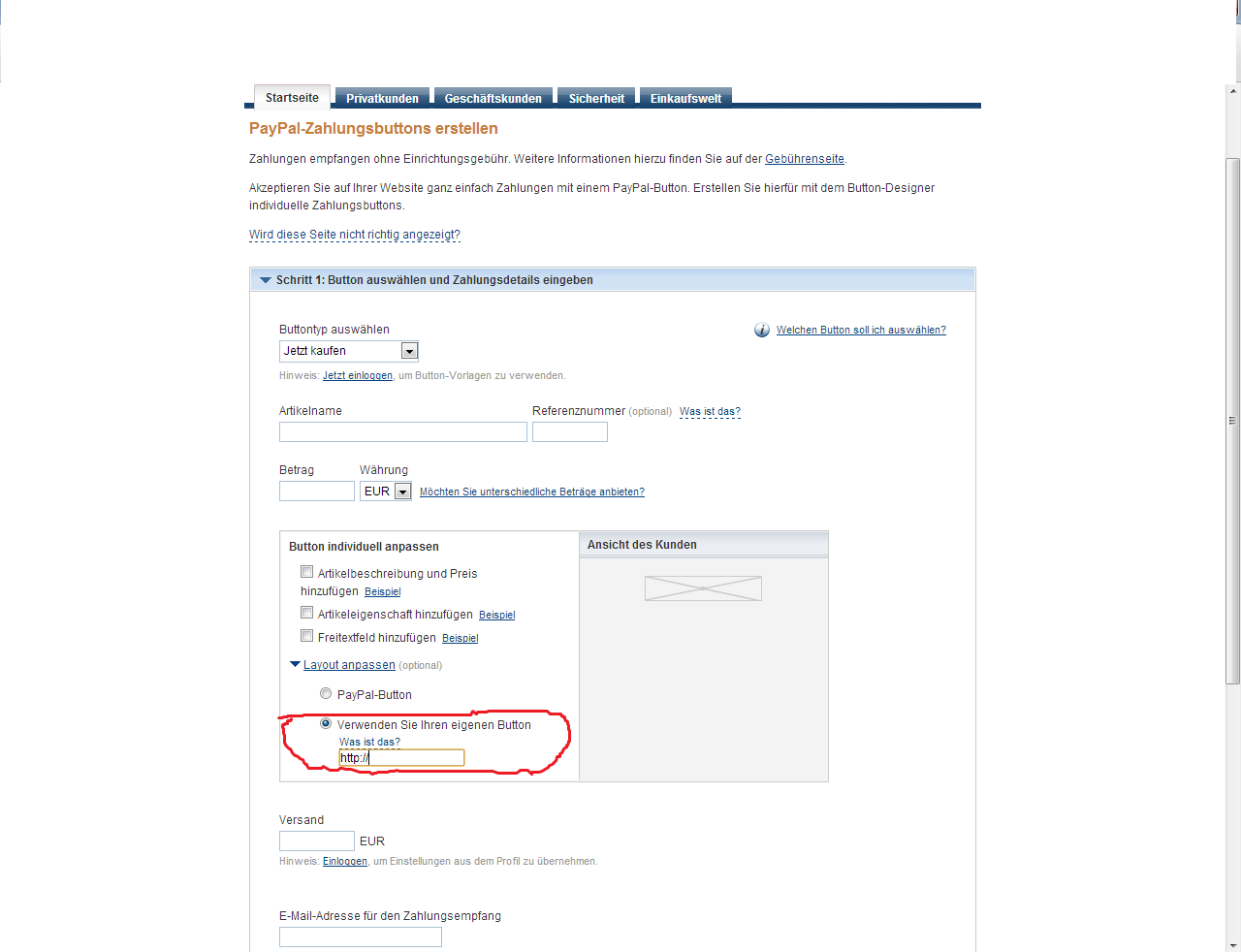 Also wie bekomme ich die UNTERSTICHENE Zeile Code in die Paypal Zeile?