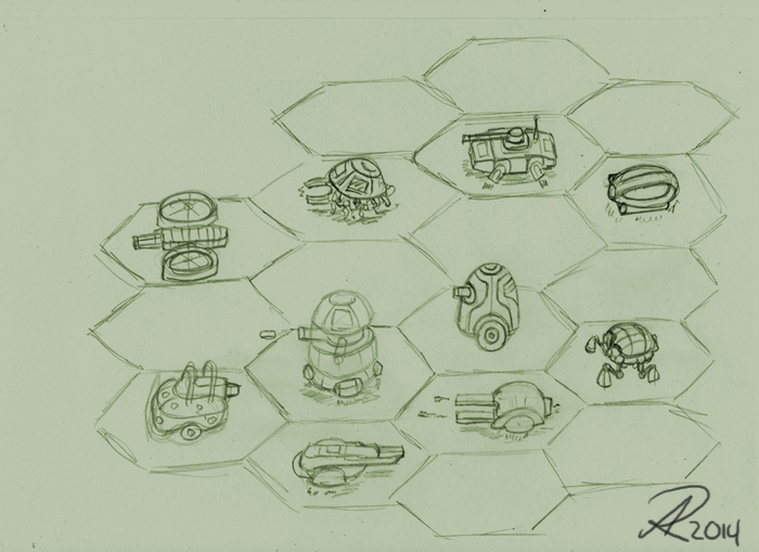 Mach ein abstraktes Datenmodell (Waffenstärke, Panzerungsstärke, Bewegungsweite etc.) in welchem sich jede Einheit abbilden lässt und schau wie die Regeln gegeneinander sein könnten. Du schreibst, du willst schauen dass die 10 Drohnen möglichst unterschiedlich beschrieben werden. Du musst aber zuerst die Gemeinsamkeiten (kleinstes gemeinsames Vielfaches sozusagen) ausarbeiten, damit alle Ideen in dasselbe Datenmodell passen. Und genauso wichtig: die Regeln, wie man sich auf dem Spielfeld bewegt, welche Eigenschaften die Felder haben sollen etc.