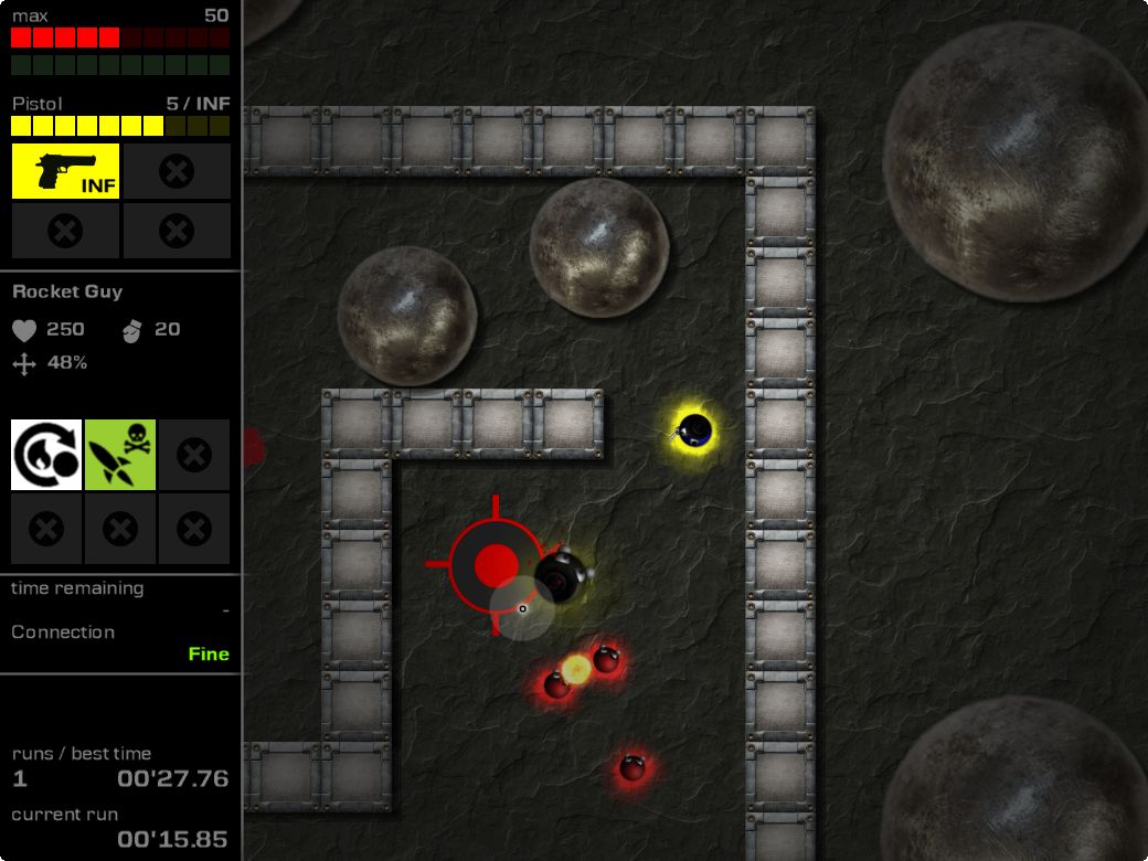 Das Spiel ist derzeit im Beta-Status. Derzeit sind mir keine Bugs mehr bekannt und alle Features sind soweit fertig. Es fehlt teils noch an Balancing und es wird wahrsheinlich noch der ein oder andere Bug auftreten, sobald die "Masse" testet. Die erste Beta-Phase ist auf 50 Benutzer beschränkt, da die Server-Hardware derzeit noch etwas schwach auf der Brust ist und ich erstmal prüfen möchte, wie sich der Server bei mehr als 2 Spielern verhalten wird (Stresstests wurden aber schon durchgeführt).