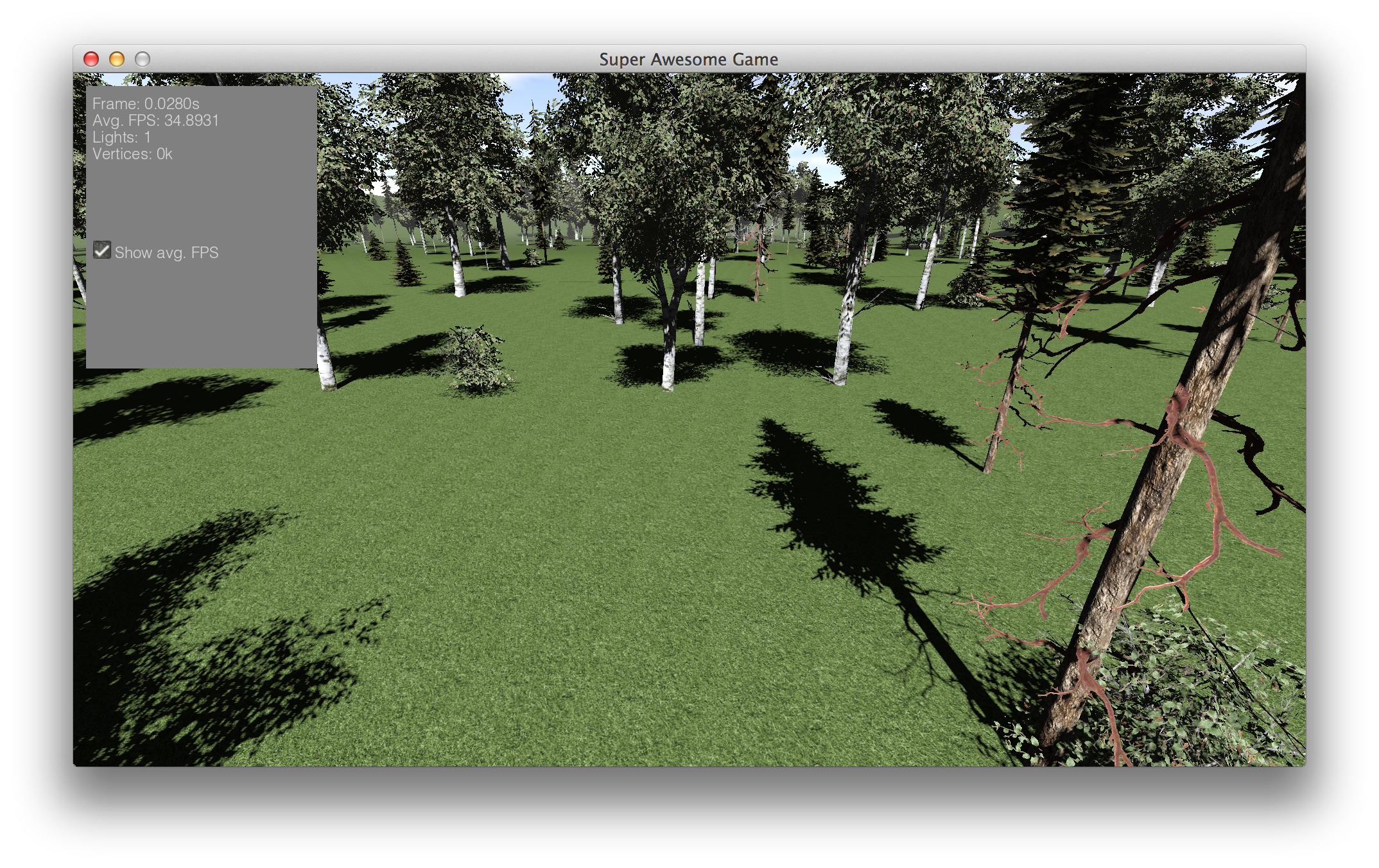 Schön anzusehen! Mir gefällt der Kontrast zwischen dem langweiligen Boden und dem Gras nicht, aber das sind Details. Was hast Du denn für ein Spiel mit der Engine geplant?
