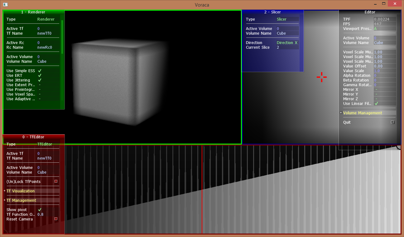 heute veröffentliche ich mein Projekt "Voraca" (Volume Ray-Caster) sowohl als binäre Datei für Windows als auch in Form von Quellcode. Es handelt sich im Kern um die Umsetzung des Ray-Casting Algorithmus mithilfe von C++/OpenGL 3.3 bzw. GLSL 3.3 und ist im Rahmen meiner Bachelorarbeit "Interaktives Ray-Casting von Volumendaten" entstanden. Folgende Techniken sind umgesetzt worden und können im Programm angewählt werden: