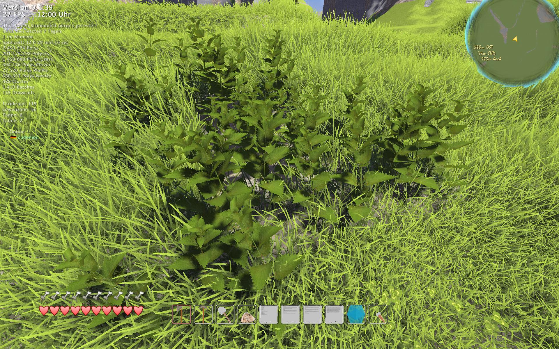 So, die Nässe funktioniert nun auch für die Brennnesseln. Außerdem können sie auch nieder getreten werden, bessere Detailreduzierung. Die Dichte wurde für die Brennnesseln erhöht und die Dichte wird nun außerdem vorberechnet.