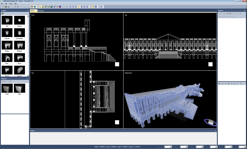 Langsam muß ich die neue Version auf Stabilität testen. Deshalb habe ich mal das Colloseum modelliert. Es ist nicht vollständig und auch nicht maßstabsgetreu. Das Modell hat keine Stunde gedauert. Leider sieht man das ein Teil der Texture-Koordinaten beim Zylinder noch nicht korrekt berechnet wird, diesen Teil habe ich farblich markiert. Den Explorer habe ich ein wenig verzerrt damit man die Hierarchy vollständig sieht. Wie man sieht ist es sehr übersichtlich.
