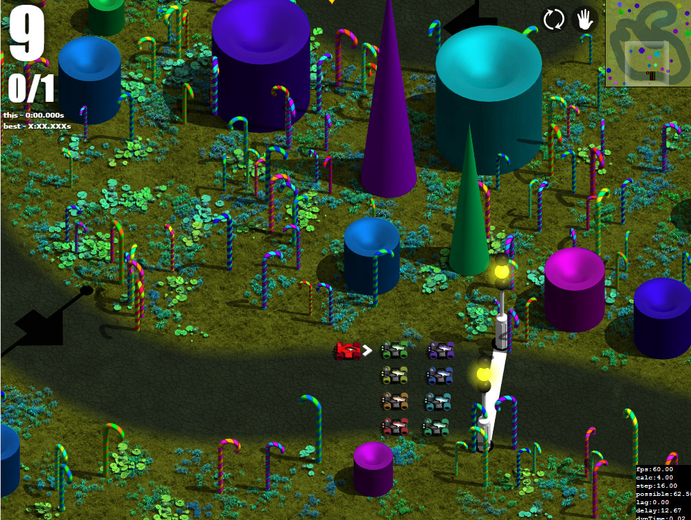 viel habe ich ansonsten nicht auf die beine gestellt. zu viel zu tun und nicht so gesund, elende grippe. etwas feedback habe ich aber von nem kollegen bekommen: zu schwierig, bäume nerven (weil man hängen bleibt) und es ist nicht immer klar wo man fahren soll. am schwierigkeitsgrad habe ich jetzt bei den einfachsten zwei stufen noch etwas gedreht, die bäume lass ich aber mal. bei den checkpoints habe ich eine änderung gemacht: es werden die pfeile nur noch dort angezeigt wo man auch hinfahren kann/soll. ich hoffe das macht die geschichte etwas klarer.