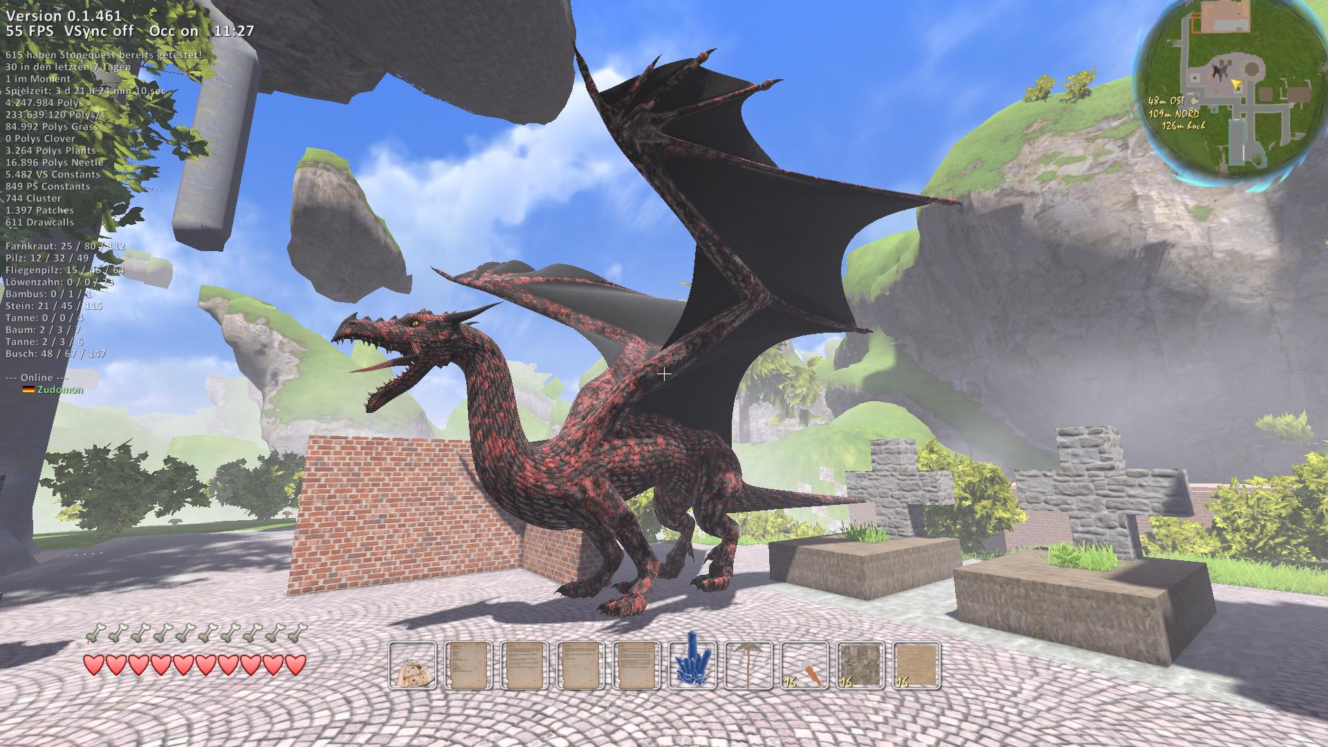 Ich will dann als nächstes mal schauen, dass der Drache auch mal rumlaufen kann... und zwischendurch wäre es schon sehr sinnvoll, den shader dann mal in eine Textur zu backen, damit der Pixelshader nicht ganz so sehr auf die Performance geht.