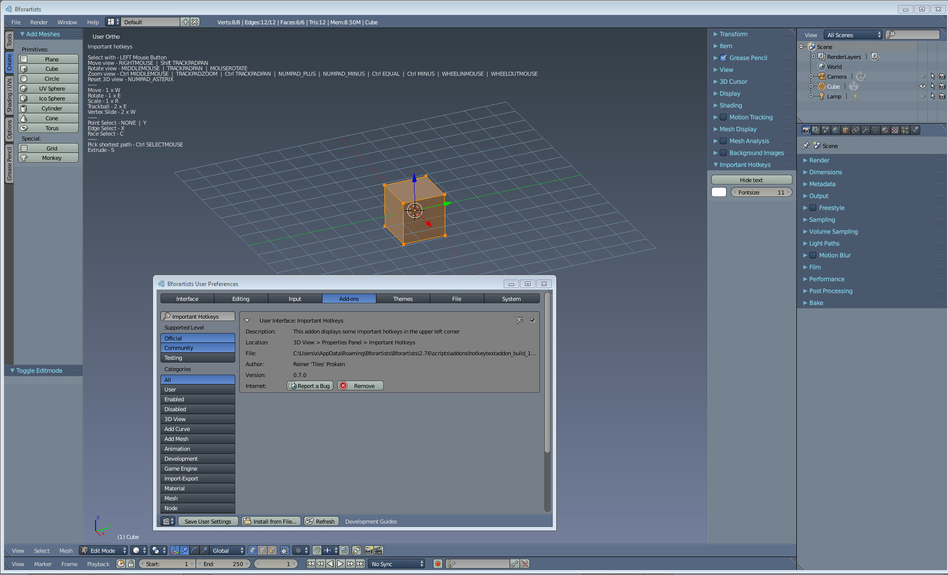 Wie ihr vielleicht schon mitbekommen habt entwickle ich gerade an einem Plugin das in Blender oder Bforartists oben rechts im Viewport die wichtigsten Hotkeys anzeigt.