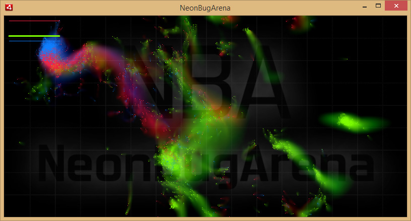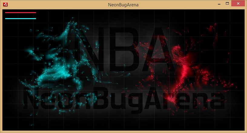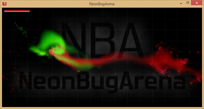 @Farben: Es sind 5 Demolevel mit zwei oder mehr Parteien und unterschiedlichem Startaufbau und Gesamtzahl an Bugs drin. Die Reihenfolge und Farben sind nicht zufällig. Rot vs. Grün ist halt einfach der erste Level. Wenn Rot gewonnen hat (roter Kreis in der Mitte) kommt man durch Klick in den nächsten Level, ansonsten wird der Level wiederholt.