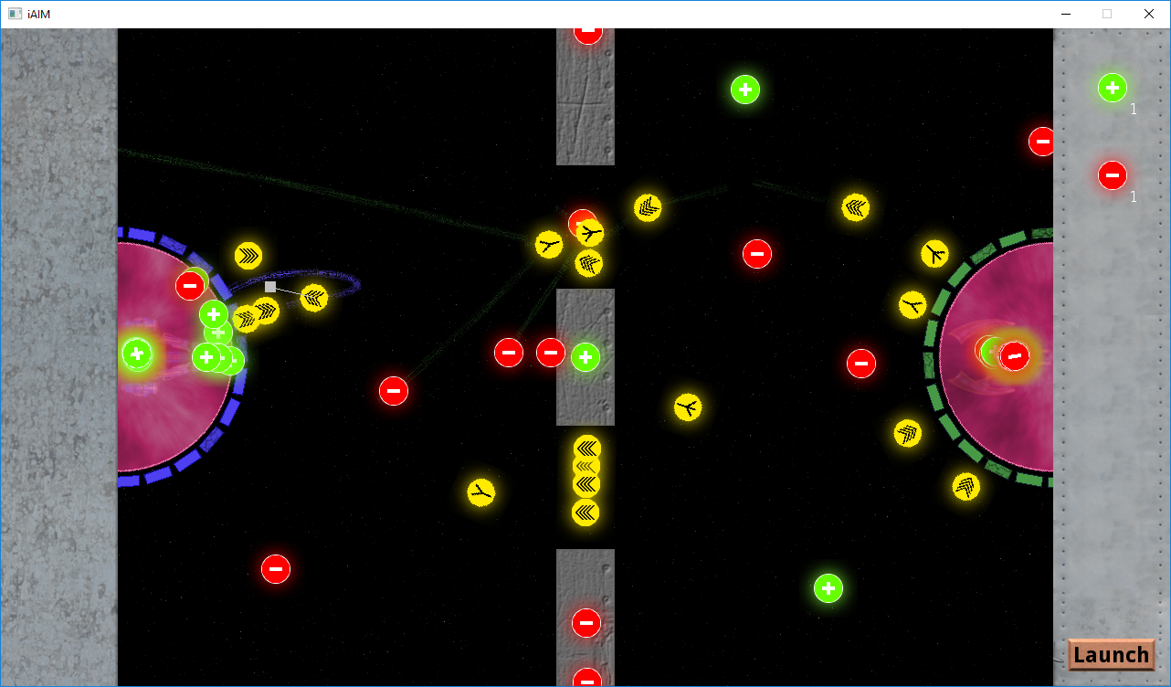 Die Maus kann klicken und es gibt Knöpfe, die kann man anklicken. Wenn man im Spiel ist, kann man mit Drag'n'Drop die Affektoren auf das Spielfeld ziehen, mit dem kleinen Nubsie den Affektor ausrichten und mit drag'n'drop den Affektor verschieben. Selektion von Affektoren via Klick. Wenn man im Launch ist, einfach klicken, um das Projektil abzufeuern.