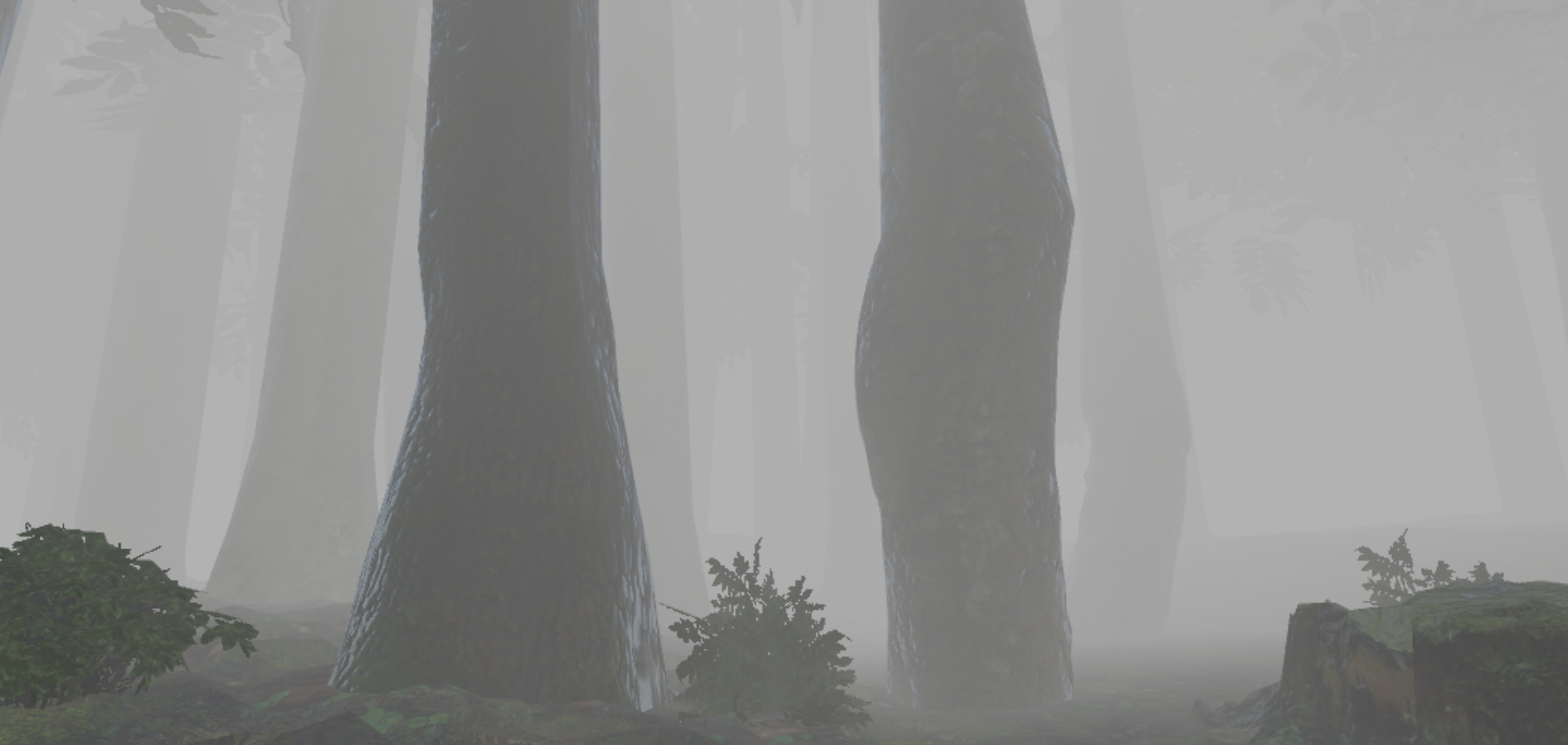 Wenn du die Möglichkeit hast, mach den Nebel zum Horizont hin dunkler als nach oben. Das vermittelt mehr den Eindruck in einem tiefen Wald zu sein, da das Licht geradeaus durch mehr Laub dringen muss als von oben.