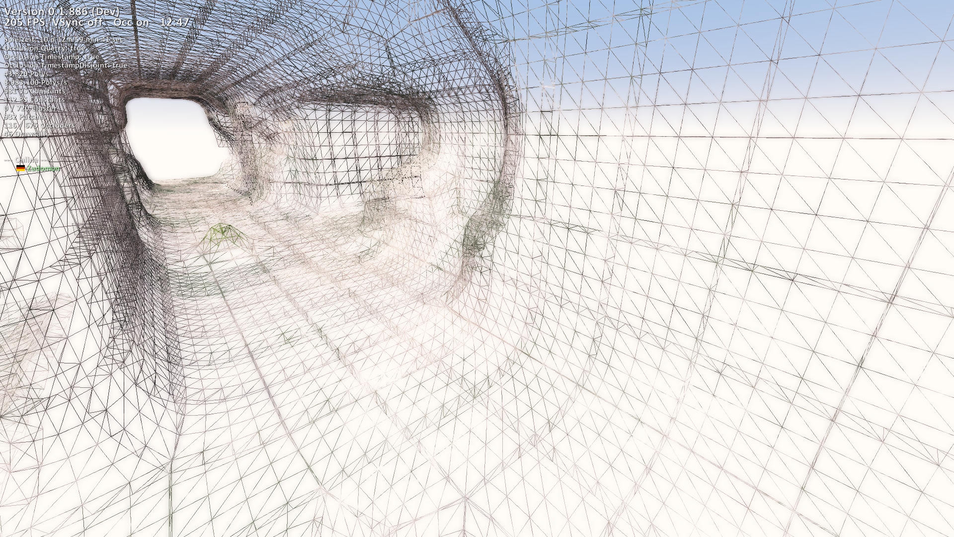 Richtig cool sieht das in Bewegung aus, wenn auf einmal alles hinter einem Occluder verschwindet. Ich weiß nicht seit wie vielen Jahren ich mir das Wireframe ansehe und denke, wäre das geil, wenn jetzt dass da hinter nicht mehr beachtet würde. Dass das auf einmal so funktioniert ist unglaublich. Da ist auch kein verspätetes einblenden wie mit den mistigen Occlusion Queries. Und klein flackern wegen zu kleinem Software Z-Buffer! :D