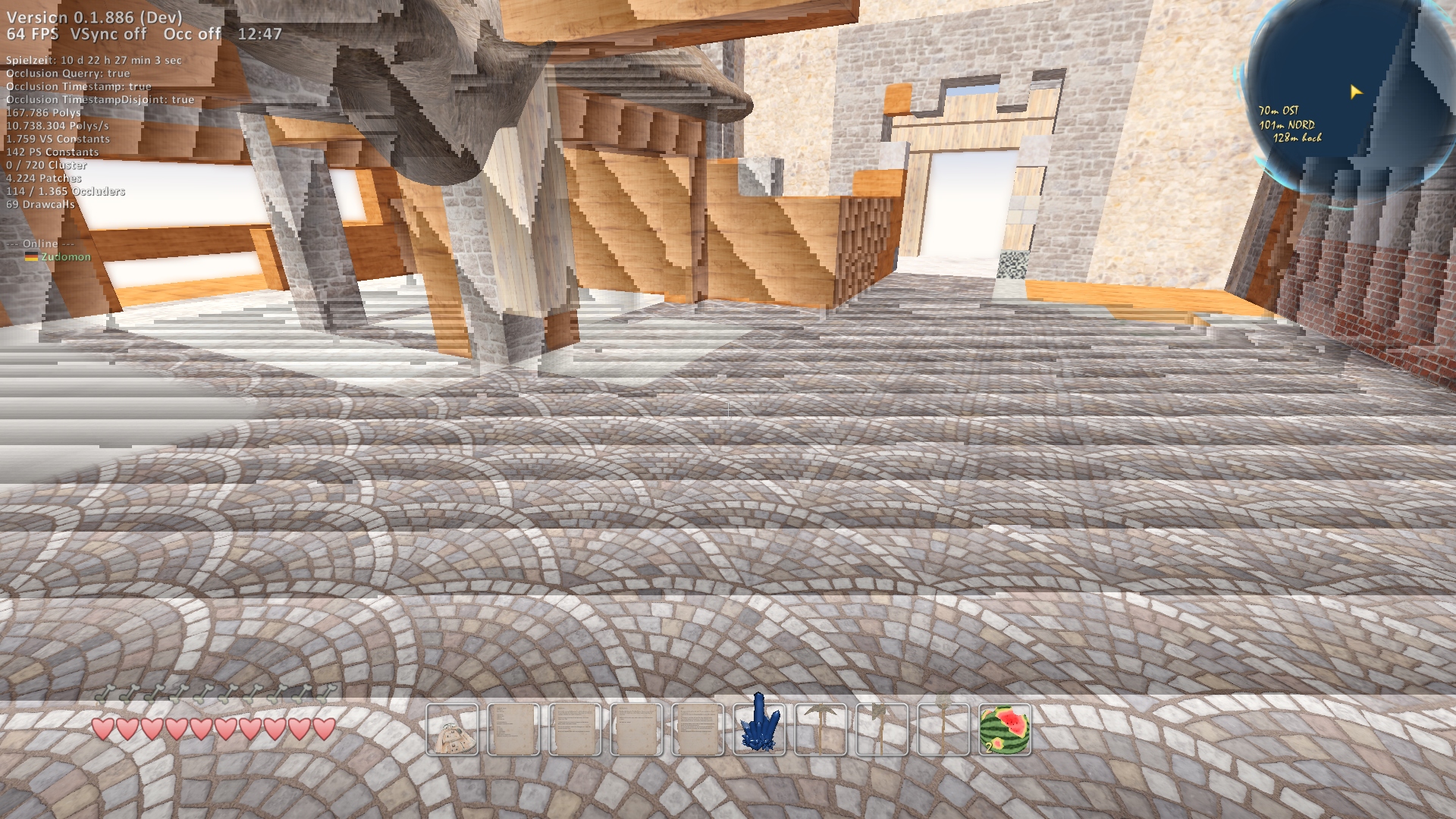 Ich weiß, es ist schon wieder Zeit vergangen... aber nur weil ich nichts poste heißt es nicht, dass ich nicht aktiv bin. Irgendwie muss ich es noch schaffen, regelmäßiger News zu bringen. Aber ist auch schwer, weil vieles einfach unsichtbar ist und ich finde es nicht so spannend, da einfach nur Text zu posten. Habe einige Bugs behoben und auch weiter optimiert. Das Occlusion Culling hab ich auf einen nutzbaren Stand gebracht, aber es ist noch nicht wirklich schneller. Das kommt dann, wenn ich mich wieder daran setze.