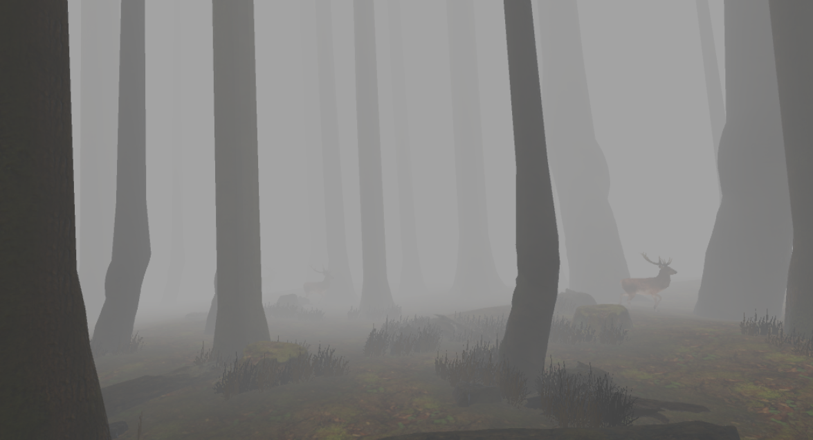 Wenn du die Möglichkeit hast, mach den Nebel zum Horizont hin dunkler als nach oben. Das vermittelt mehr den Eindruck in einem tiefen Wald zu sein, da das Licht geradeaus durch mehr Laub dringen muss als von oben.
