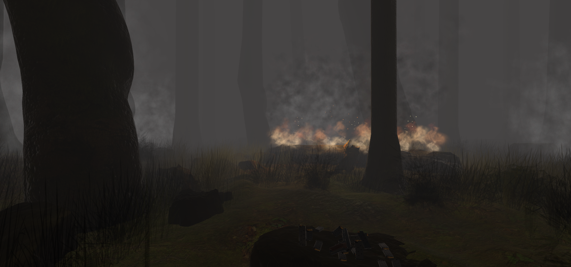 Ich muss mit den Farbwerten vom Rauch noch ein wenig experimentieren. Auch glänzen die Bäume jetzt wieder recht stark. Andererseits sehen diese dadurch ganz nett aus, obwohl es vielleicht nicht ganz so realistisch ist. :)