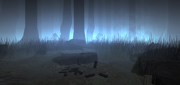 Die Waldszene ist doch etwas dunkler geworden, aber im Bereich des Spielers gibt es Knicklichter die wiederum eine gewisse Beleuchtung schaffen. Das Spiel sieht auf den Bildern unspielbar dunkel aus, aber in der HTC Vive ist alles wunderbar und darum geht es ja.