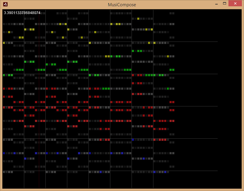 Warum keinen vorhandenen nutzen? Das Thema interessiert mich, und ich möchte gerne die Engine auch ingame nutzen/erweitern können. Außerdem brauche ich als Nicht-Musiker gewisse Hilfen, hier im Bild z.B. Rhythmus- und Harmonie-Merkhilfen als graue Kästen, und möchte im Gegenzug nicht von unzähligen Profi-Einstellungen erschlagen werden. Ein Keyboard brauche ich z.B. auch nicht, ich könnte sowieso nichts live einspielen.