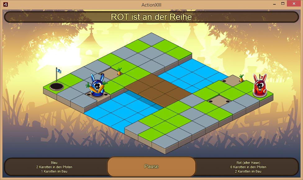 - Die KI konnte ich durch automatische Anpassung an den jeweiligen Level etwas schneller machen, zumindest für die kleineren Level. Default bei der Entwicklung ist außerdem eine Autorun-KI, um neue Level automatisch durchtesten zu lassen.