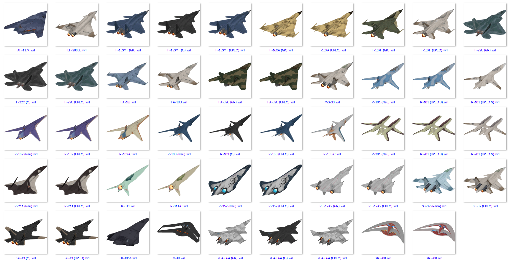 Planes can be found in folders 0066–0102 (Japanese version) and 0047–0068 (EU/US version). These all have the following layout:
