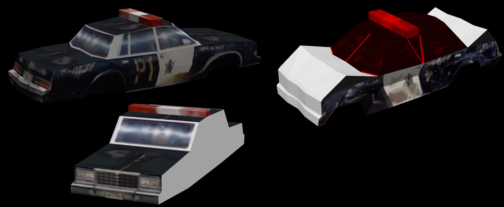 Entwurf eines Polizeifahrzeugs, das noch in den Driver-Dateien rumschwirrte. Ich bin sicher nicht der erste, der es gefunden hat (insbesondere markiert Someone972 die Textur prominent am Ende eines seiner Videos), aber es zeigt halt schön, wie die Designer vorgegangen sind: Erstmal einen Längsschnitt in 2D zeichnen, dann extrudieren, und die Vertices zurechtrücken.