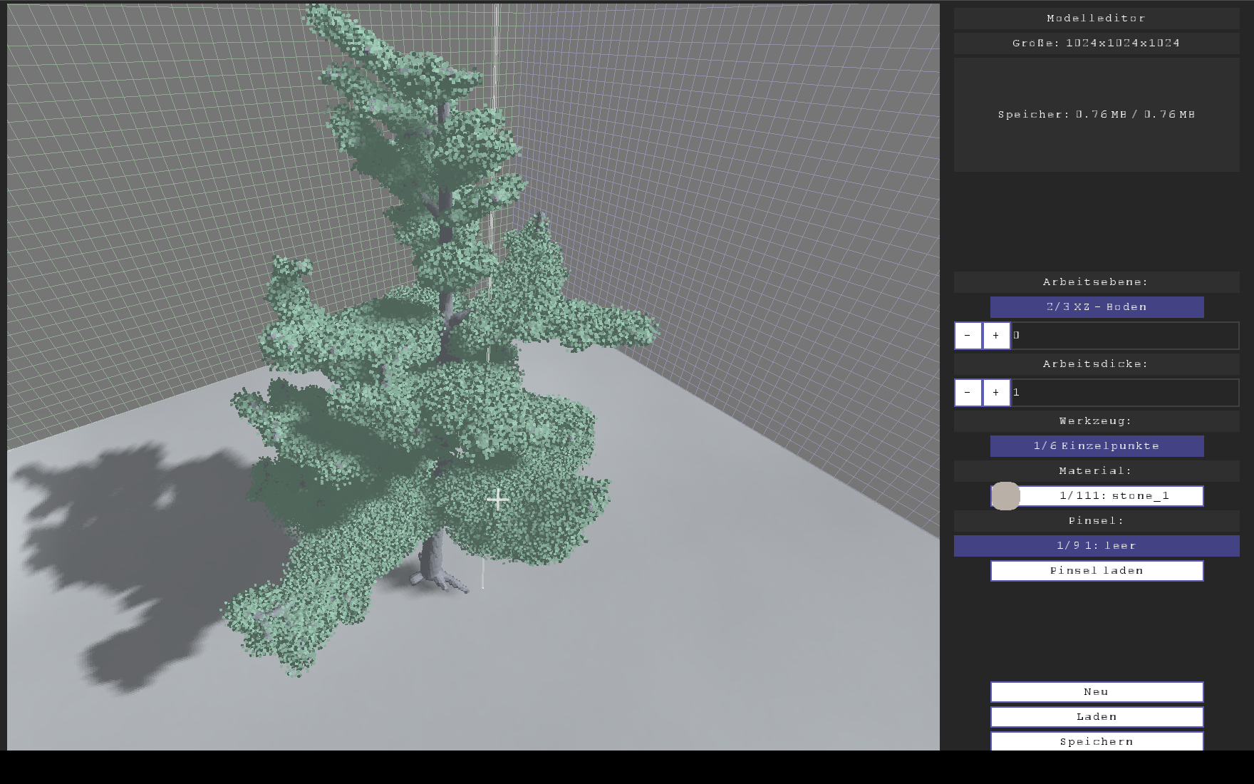 Mehr Zweige und dafür keine Blätter an den Haupt-Ästen - das habe ich auf dem Schirm. Ich mache das alles ja aber nicht, um was Bestehendes selbst zu schreiben, sondern weil das eine Voxel-Engine ist und ich meine Bäume in Voxeln braucht. Das setzt leider auch den Zweigen eine harte Grenze - weniger als 5cm Astdurchmesser kann ich nicht abbilden. Aber ich könnte da ja dann ohne Holzkern nur die Blätterwolke erzeugen. Aktuell aber wie gesagt erstmal Performance.