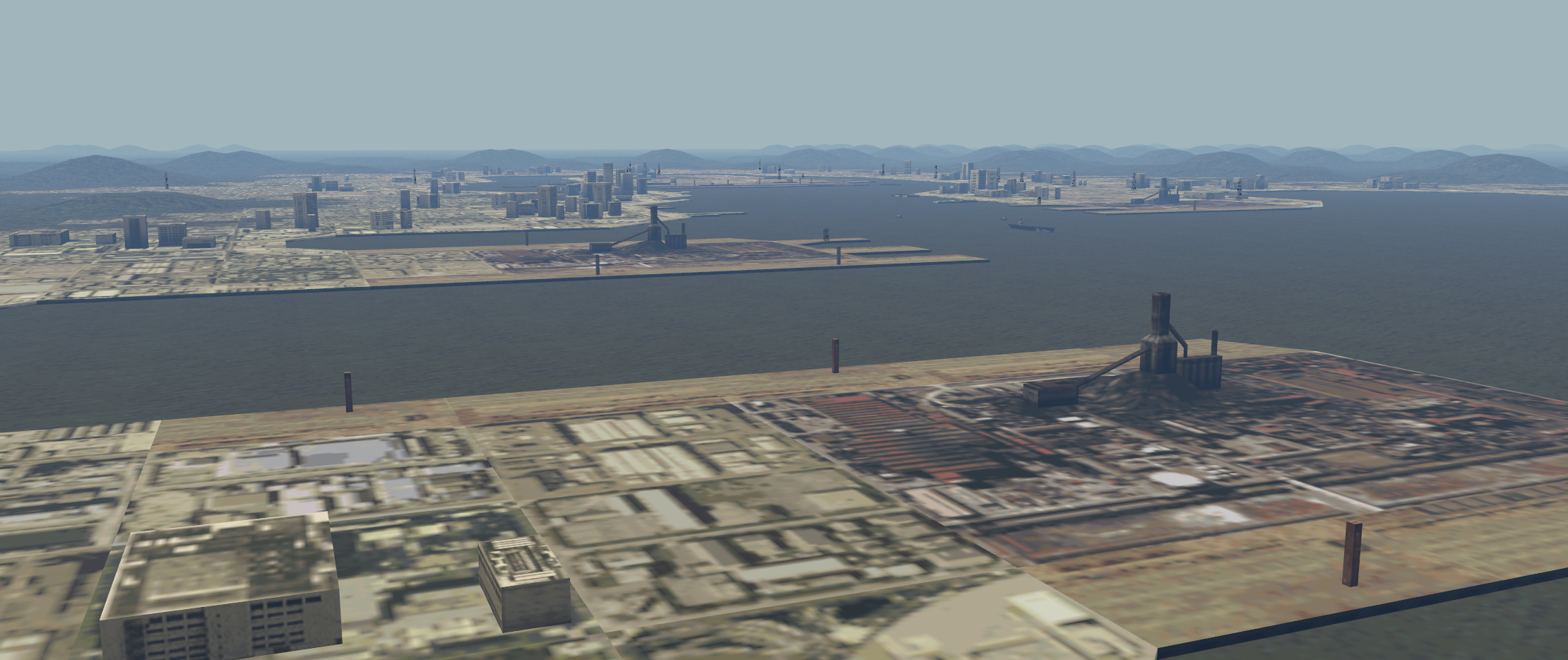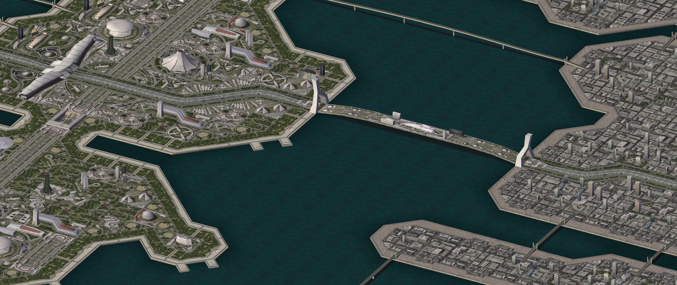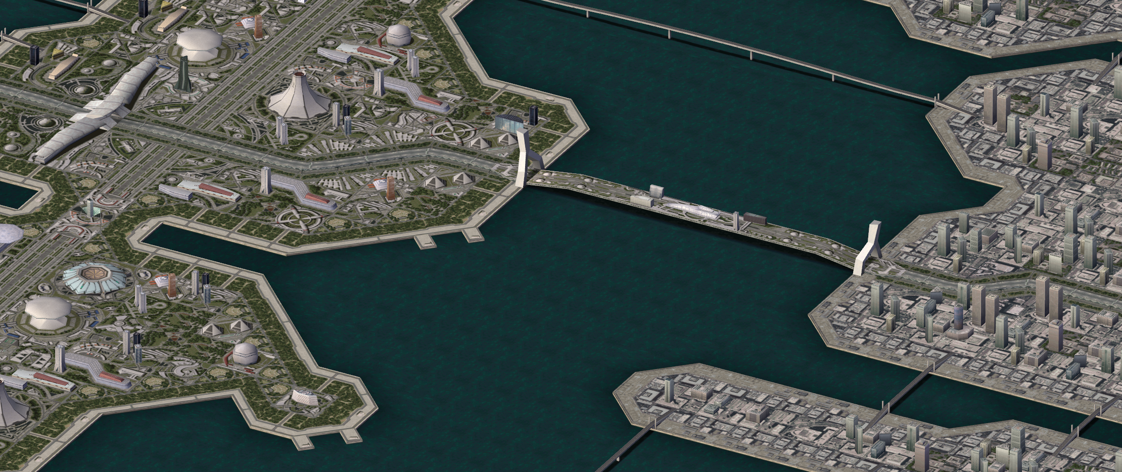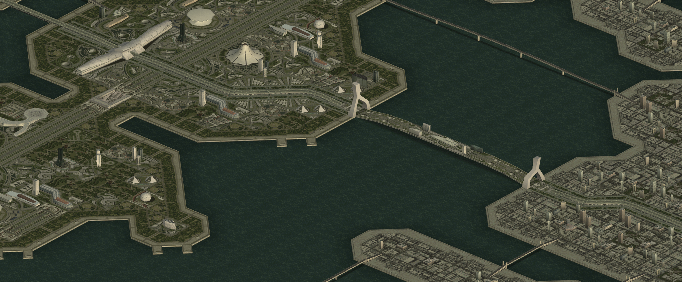 I proudly present the first snapshot of the Mission Code version of Ace Combat 3's Expo City map!
