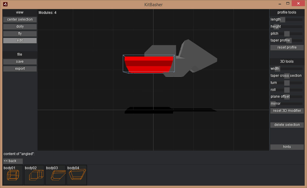 So lassen sich in wenigen Minuten aus einfachen Formen z.B. individuelle Vehikel-Prototypen "zusammenbashen", die als Programmer's Art Platzhalter, Grundlage für Konzeptskizzen und Vorlage für 3D-Designer dienen können.