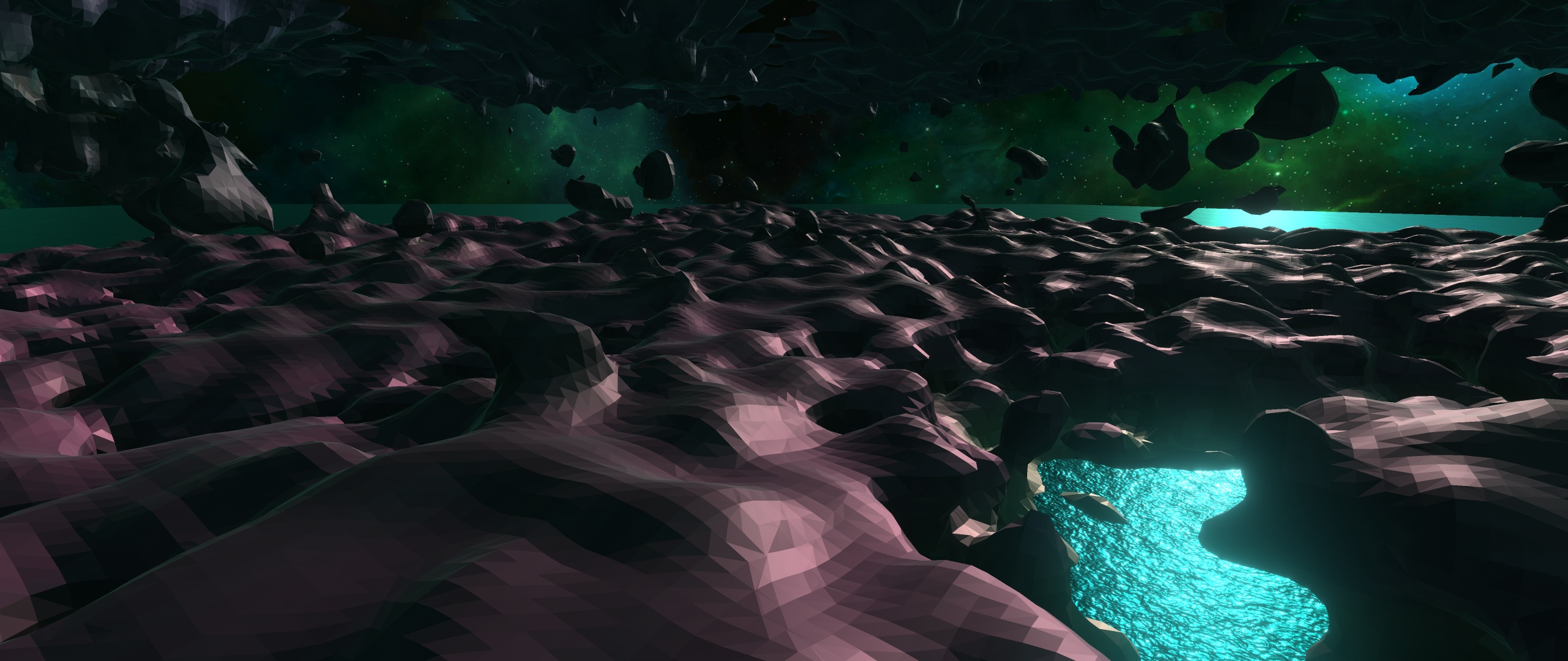 Was mich ein wenig gestört hatte bei den Höhlensystemen, war die inkorrekte Beleuchtung. Über Shadowmaps war alles viel zu hart, speziell über grosse Distanzen. Aussderdem war mir der Performancepenalty zu gross. Also habe ich mir überlegt Ambient Occlusion in die Vertexcolors mit reinzubaken.