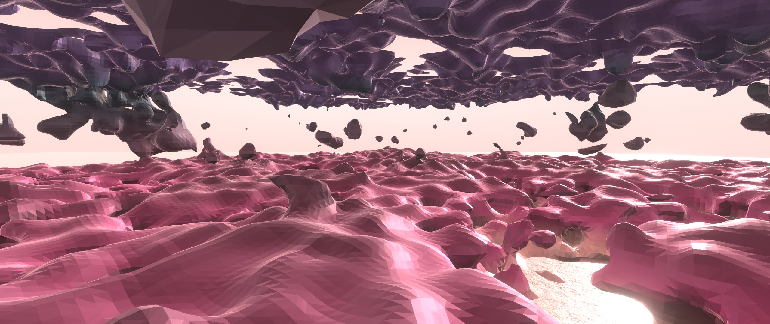 Was auch manchmal gut funktioniert und schön Retro ist: Einfaches Depth-Cue auf der Y-Achse, vertikales weiches Licht, und etwas positionsabhängige Distanz-Atmo (also einen eher dunstigen Tag mit wenig gerichtetem/direktem Licht simulieren). Da hebt sich überlappende Geometrie meist relativ gut voneinander ab. Hier z.B. meine "Canyons" sind so gerendert: http://www.phoximages.de/uploads/2018/0 ... bw60vg.jpg