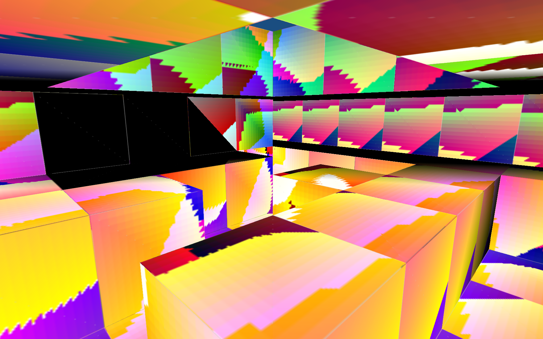 Kann Dein Code das hier, hm? Siehste. Das sind auf Wände gemappte gerundete Normalen, aber ich muss noch den LSD-Rausch finden und entziehen.