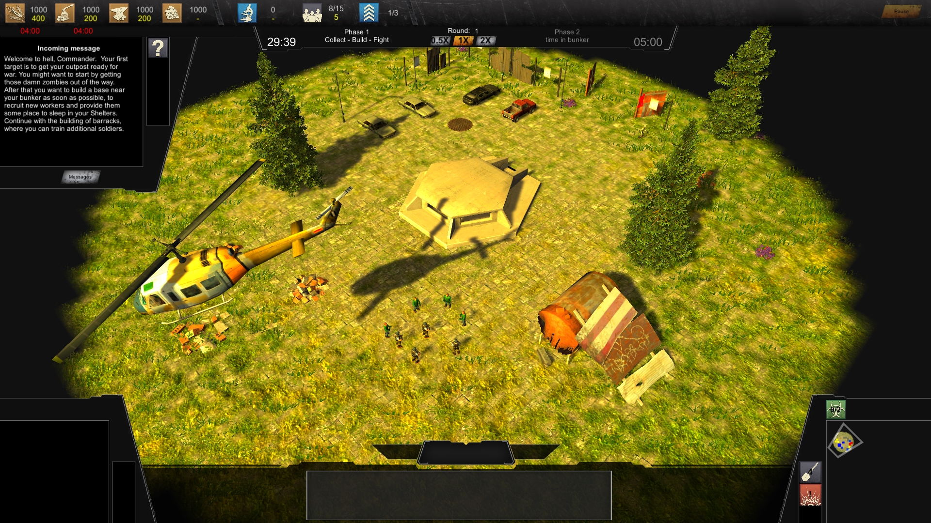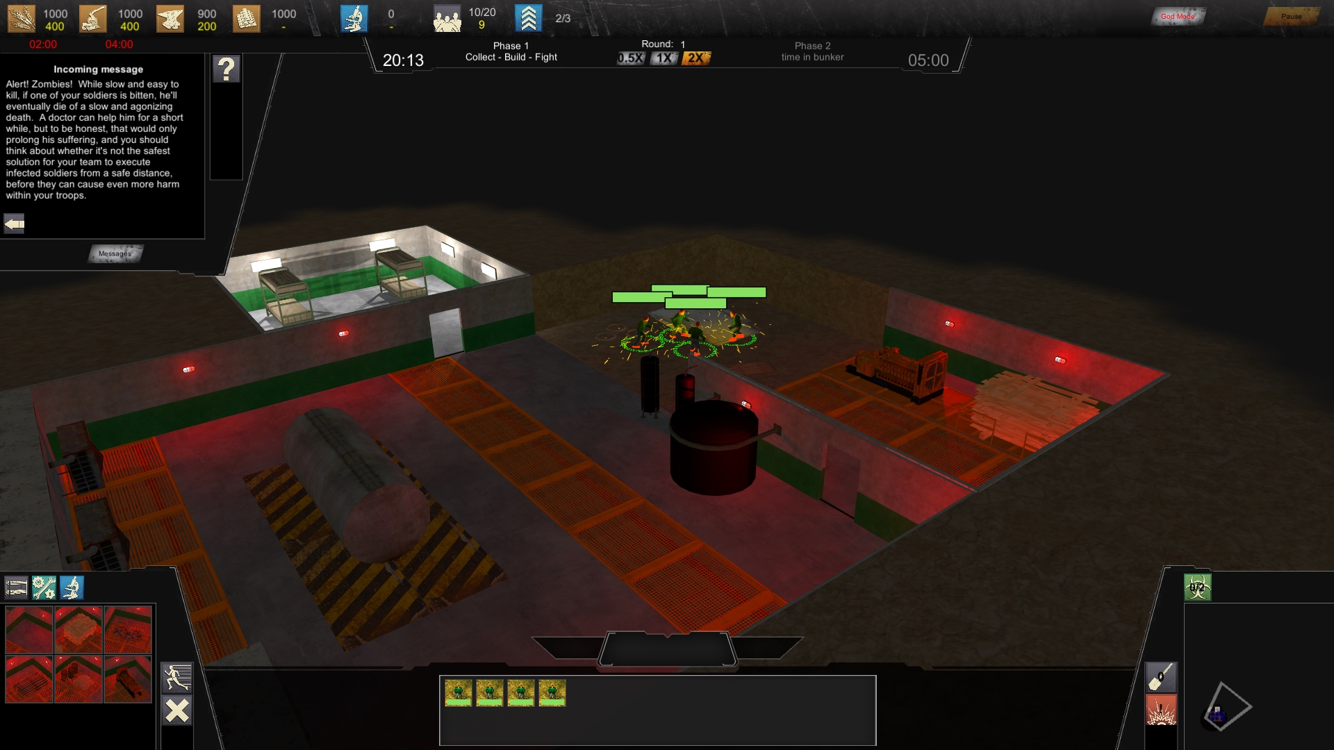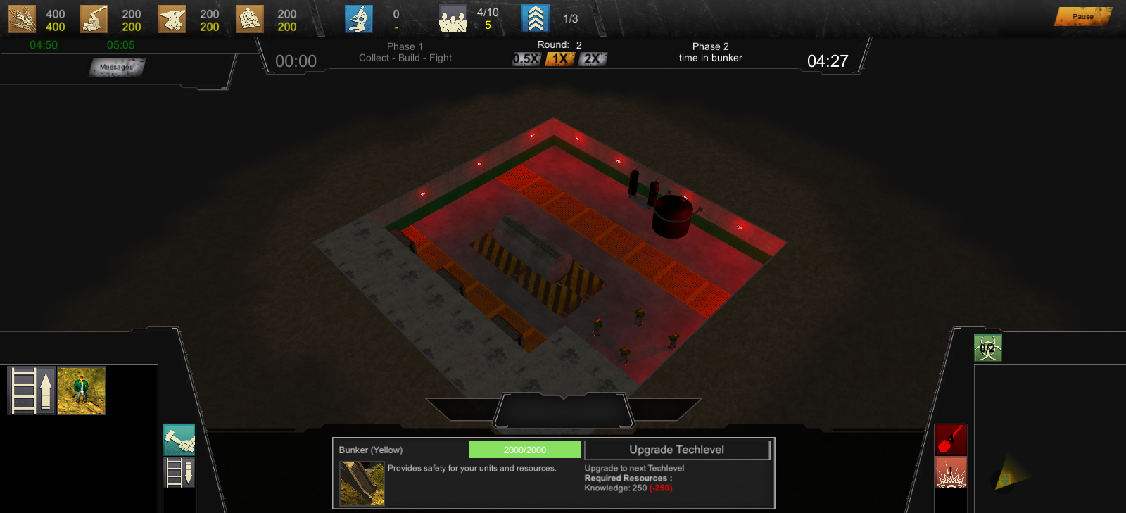 Mache ich jetzt auch (: Habe gerade noch eine Update 0.3.0.1 hoch geladen mit den ersten anpassungen:Ich würde vorschlagen den Fokus auf die erste Phase deiner Idee zu richten, d.h. was passiert vor der Bunkerzeit. Man muss halt 30min überleben und dann hat man Phase 1 gewonnen. Heisst aber Phase 1 muss in sich geschlossen gut funktionieren und irgendwie Spass machen, der Tech-Tree kann durchaus limitiert sein. Dann wird alles Zerstört und man kommt aus dem Bunker raus und Phase 2 beginnt. Mit sowas hättest du schon eine gute Demo und könntest gar über Kickstarter und ähnliches Zeug nachdenken (was ich auch hätte machen sollen, oder noch sollte).