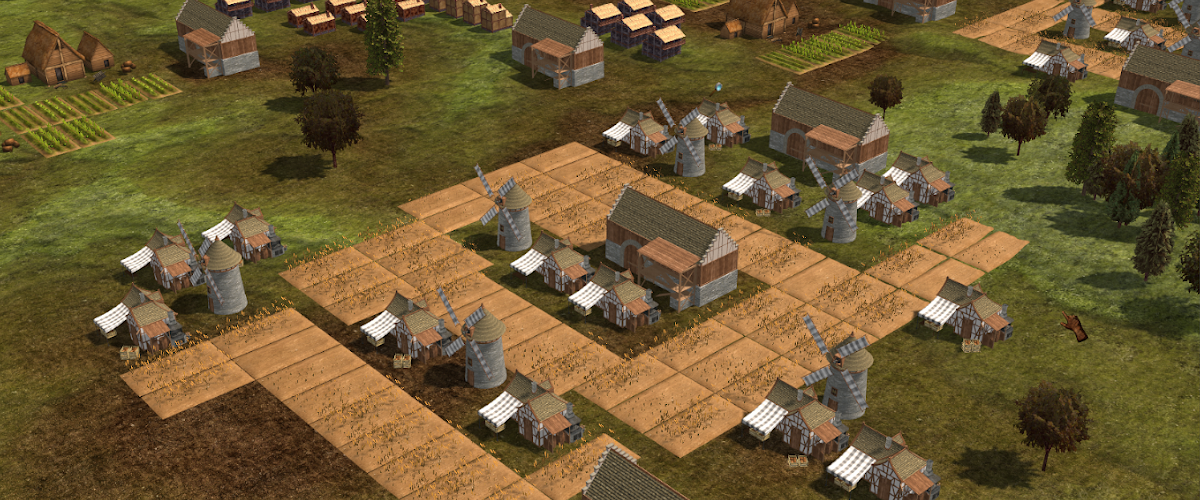 Nach dieser Startphase kommt eine etwas nervige Phase in der man eigentlich expandieren will, aber eben echt viele Bauernhöfe bauen muss. Man würde gerne richtig viel Holz produzieren, aber wenn man das versucht, sterben halt alle. Sobald man aber mühsam das Holz für die Erforschung neuer Gebäude zusammen hat und die ersten Brote gebacken sind wird das Spiel spürbar einfacher, weil man mit viel weniger Arbeitern sein Volk ernähren kann. Der Teil gefällt mir auch, man muss den Spieler etwas quälen, damit er sich danach richtig freuen kann.