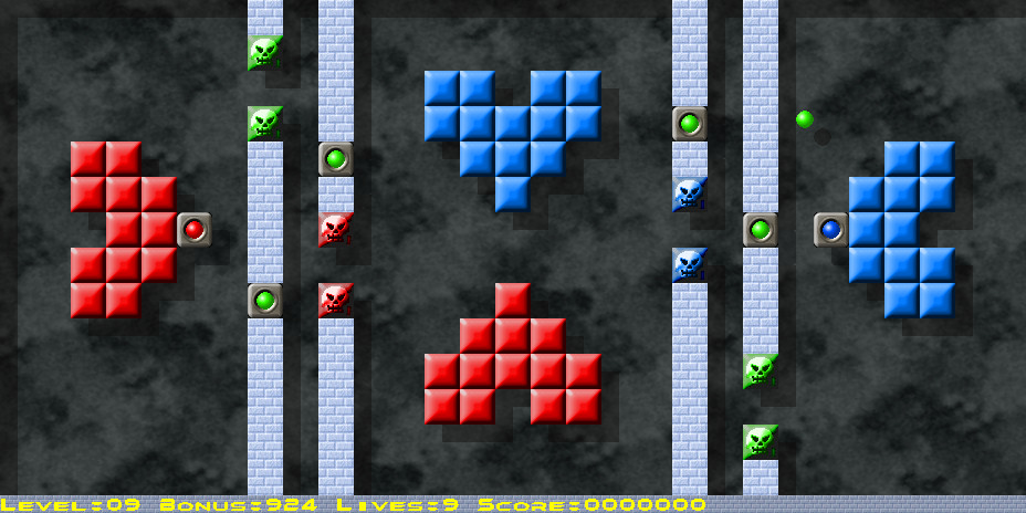 Das Spielprinzip ist schnell erklärt – Man steuert eine Kugel, die farbige Blöcke zerstören soll. Da dies zu einfach wäre, muss die Kugel und der Block die gleiche Farbe haben. Auch andere Elemente wie Totenköpfe, die nach den Leben der Kugel trachten, Disketten, die bei Berührung verschoben werden oder ganz simple Mauern erschweren das Leben unseres runden Freundes.