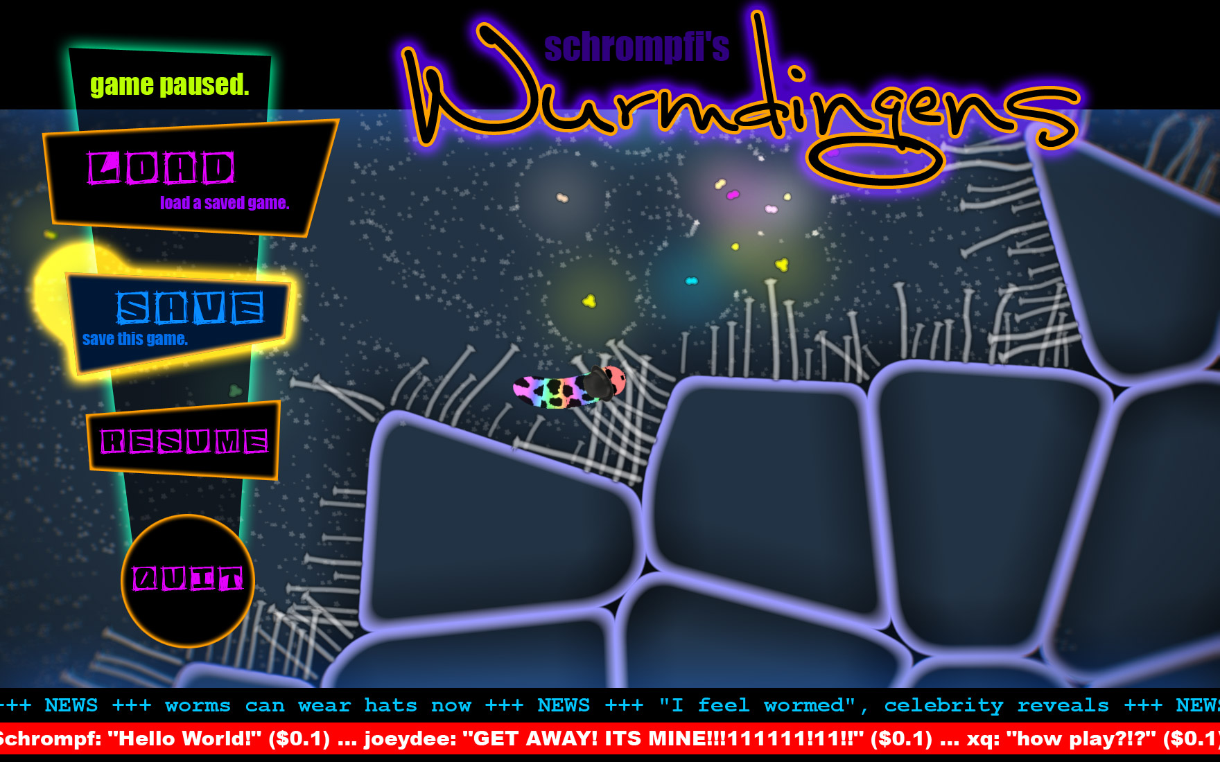 Trotzdem, wäre ich Art-Director dieses Spiels, würde ich wohl mal versuchen, Umgebung wie Hintergrund, Zellen, Tentakel etwas "realistischer" mit Durchlichteffekt, Parallax und Tiefen(un)schärfe zu rendern, die Würmer und Nahrung dagegen im Kontrast so wie sie sind comichaft. Und als UI-Style vielleicht 80er Laborgeräte imitieren.