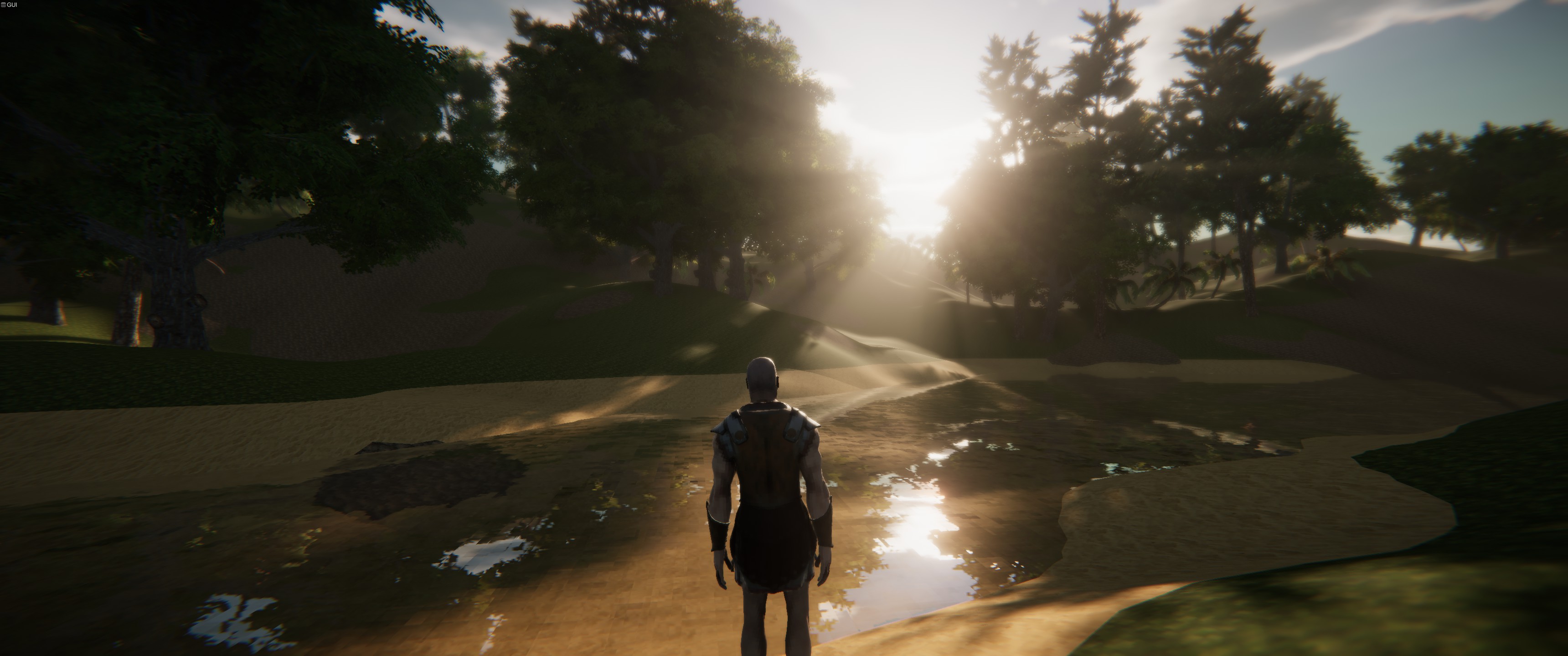 Chunk-basiertes prozedurales Heightmap-Terrain (der Shader ist noch wirklich billig und die Texturen aus Discovery) mit den Speedtree-Bäumen die's bei Unity gratis in den StdAssets gibt. Dazu noch ein Spartaner-Model und ein Wetter-Plugin aussem Assetstore.