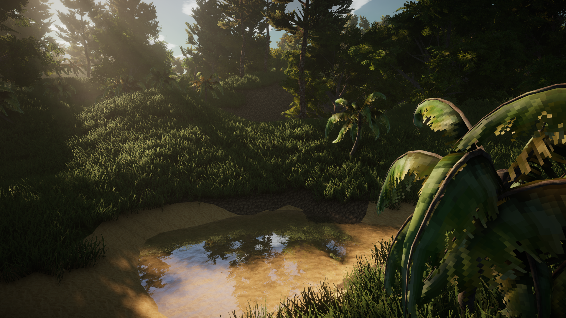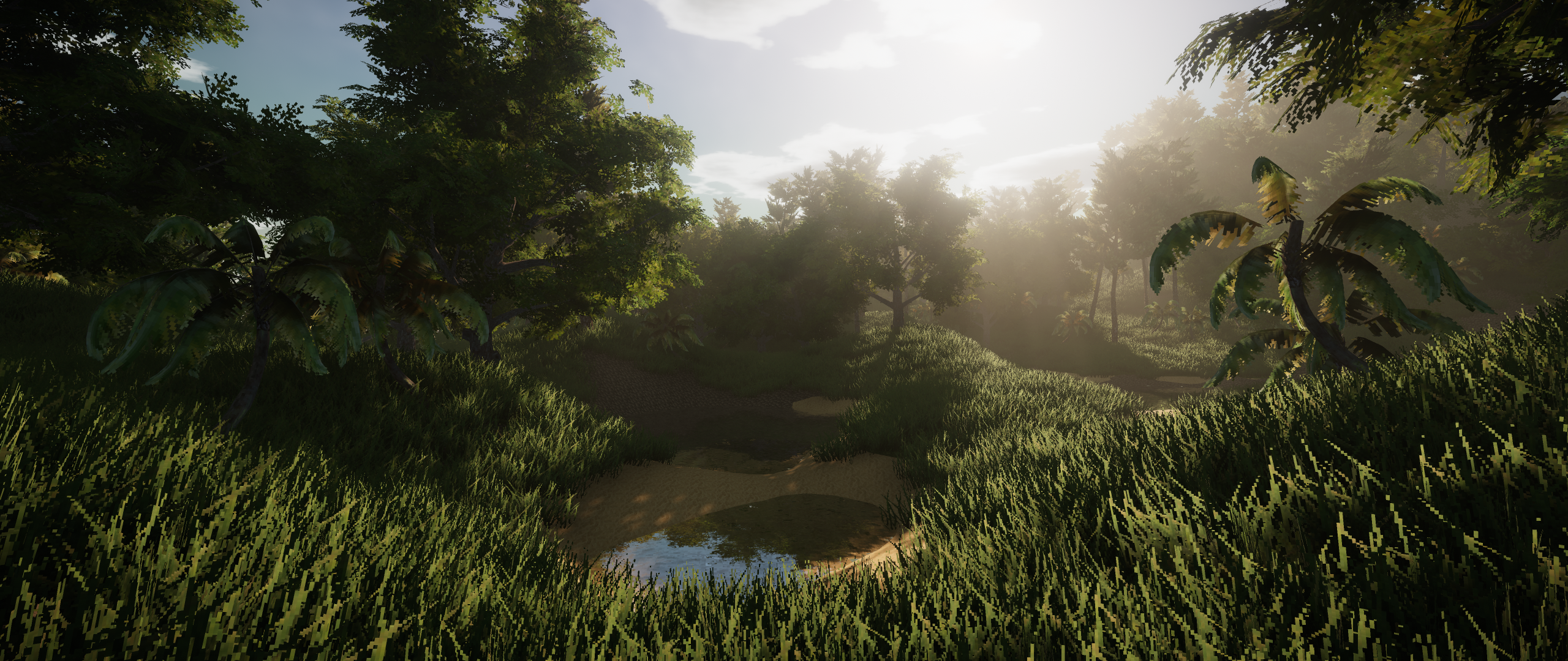 Naja, also die Terraingen/shader hab ich selbstgemacht. Wenn Du das Wetter-Asset und das Postprocessing wegnimmst, sieht es auch 2000er mässig aus, da ist es dann nur noch traurig... :D
