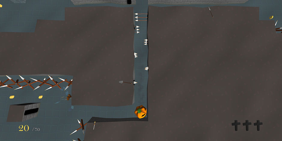Der Spieler steuert einen kleinen Kürbis, der versucht den tiefen Katakomben einer Kirche zu entkommen. Dummerweise haben Kürbisse keine Beine; der Gute kann zwar losrollen, aber eben nicht von selbst wieder anhalten. Gestoppt wird nur, wenn man gegen ein Hindernis rollt. Aber vorsicht: in den Gewölben lauern zahlreiche Fallen und wer alle Münzen und Kreuz-Relikte sammeln will, riskiert mitunter seine (Kürbis-)Haut. Gesteuert wird mit den Pfeiltasten oder alternativ WASD.